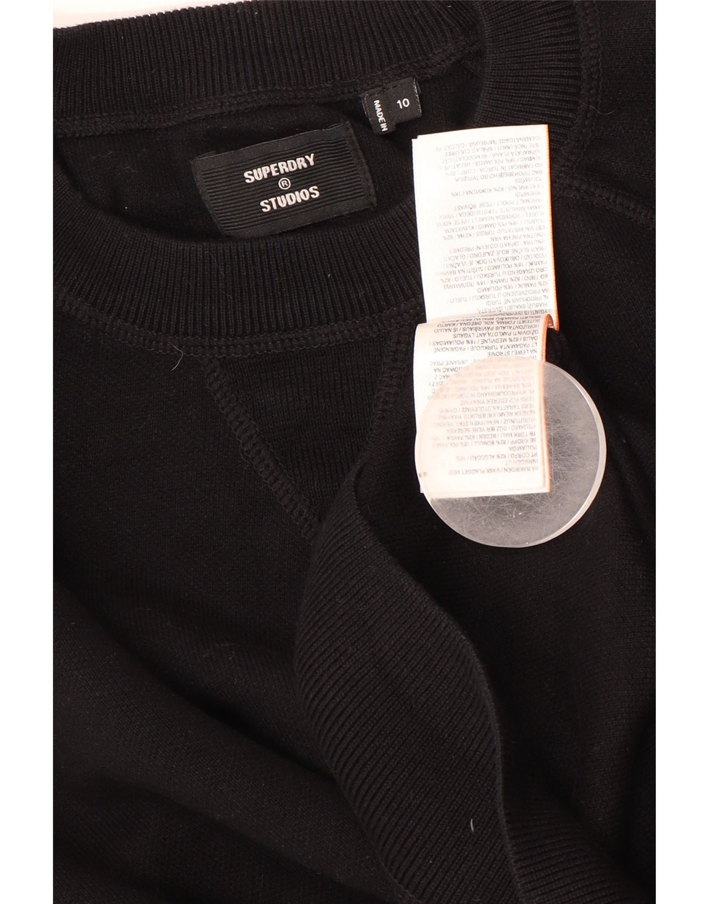 SUPERDRY Womens Crop Oversized Sweatshirt Jumper UK 10 Small Black Bomuld