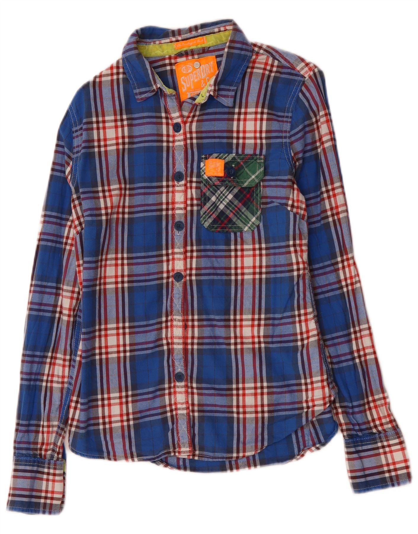 SUPERDRY Dame Flanellskjorte UK 12 Medium Blue Ternet Bomuld