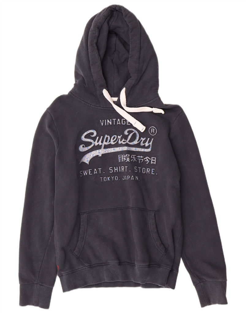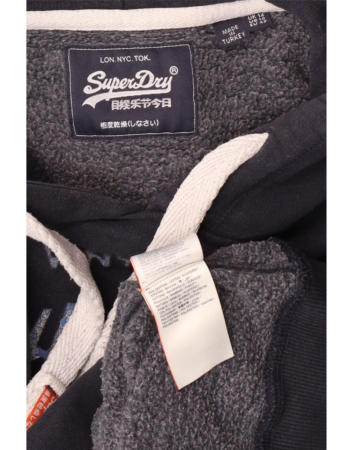 SUPERDRY Grafisk hættetrøje til kvinder UK 14 Stor marineblå bomuld
