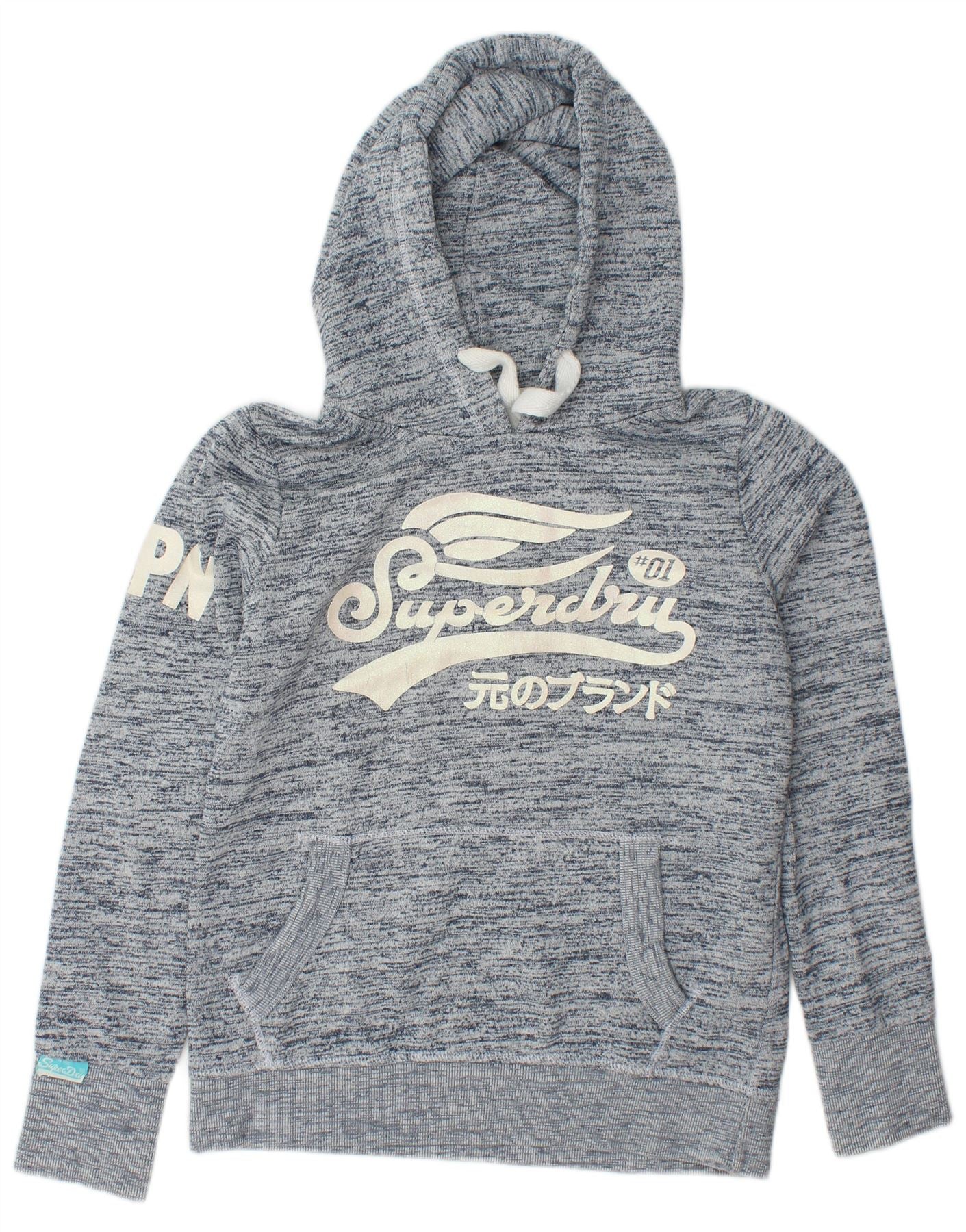SUPERDRY grafisk hættetrøje til kvinder UK 16 Stor marineblå flækket bomuld