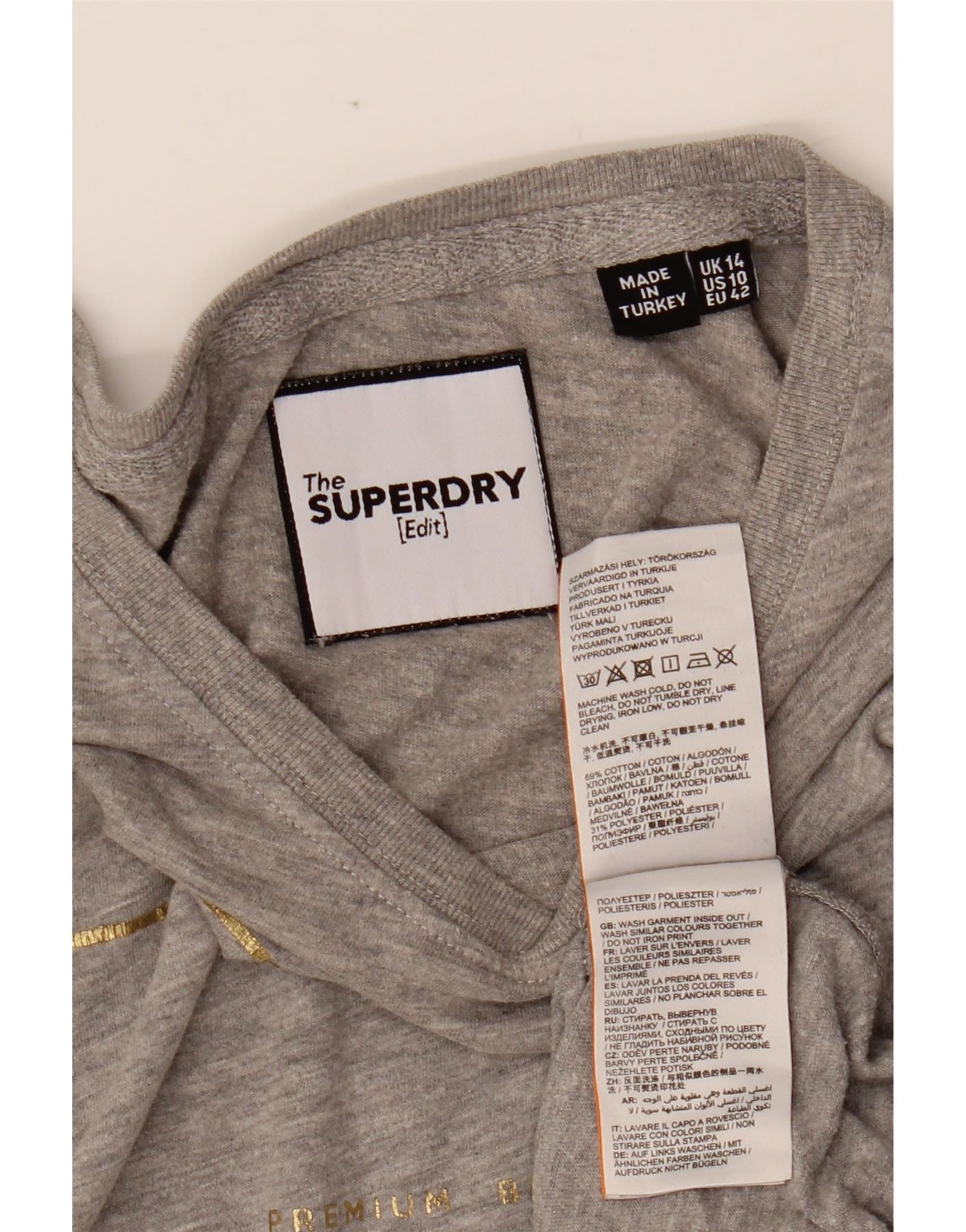 SUPERDRY Grafisk T-shirt top til kvinder UK 14 Stor grå bomuld