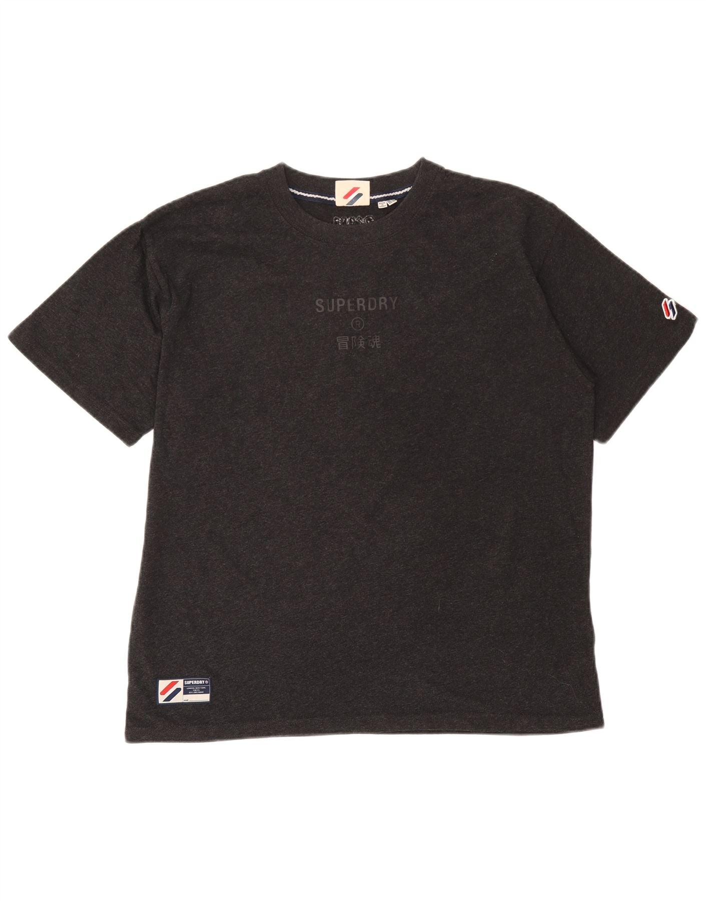 Superdry Grafisk T-shirt top til kvinder UK 14 Stor grå bomuld