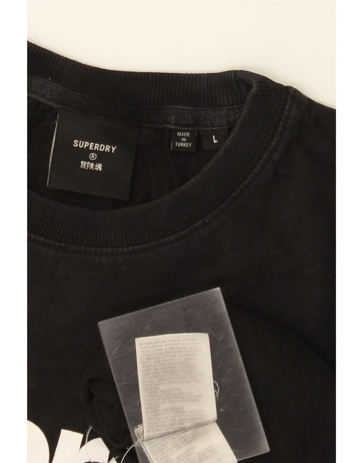 SUPERDRY Dame Grafisk T-Shirt Top UK 16 Stor Sort Bomuld