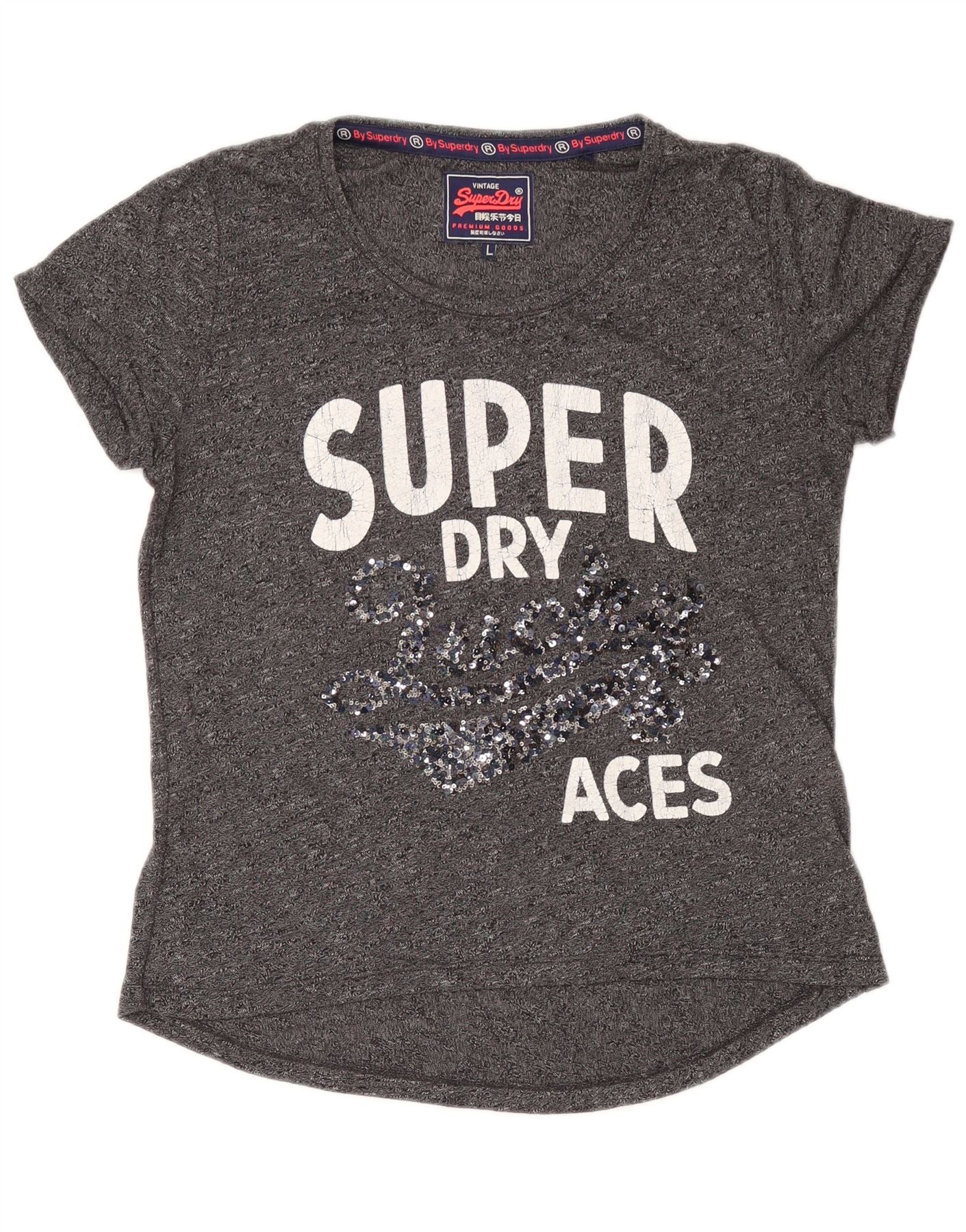 Superdry Grafisk T-shirttop til kvinder UK 16 Stor, grå flækket bomuld