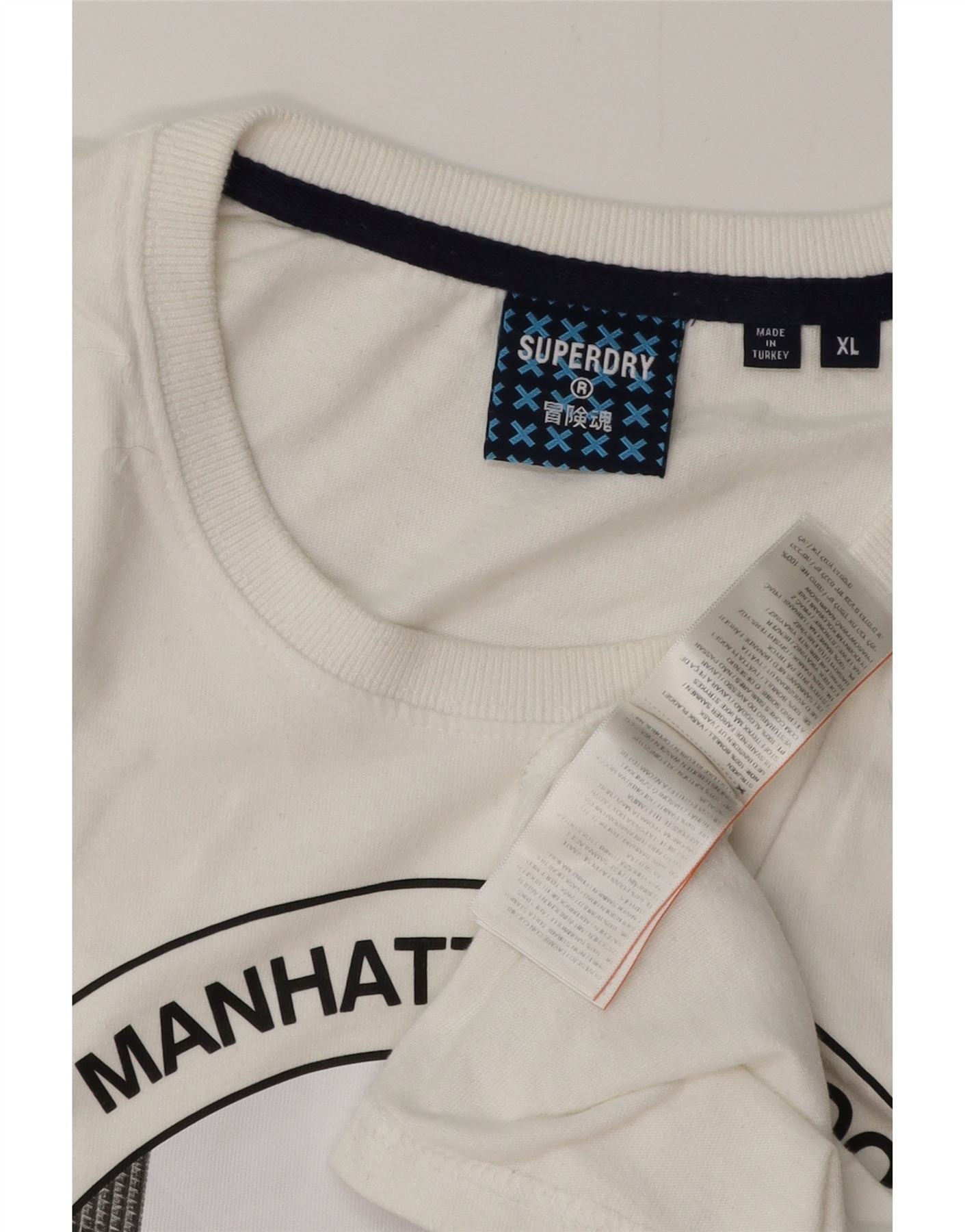 SUPERDRY Grafisk T-shirt top til kvinder UK 18 XL Hvid bomuld
