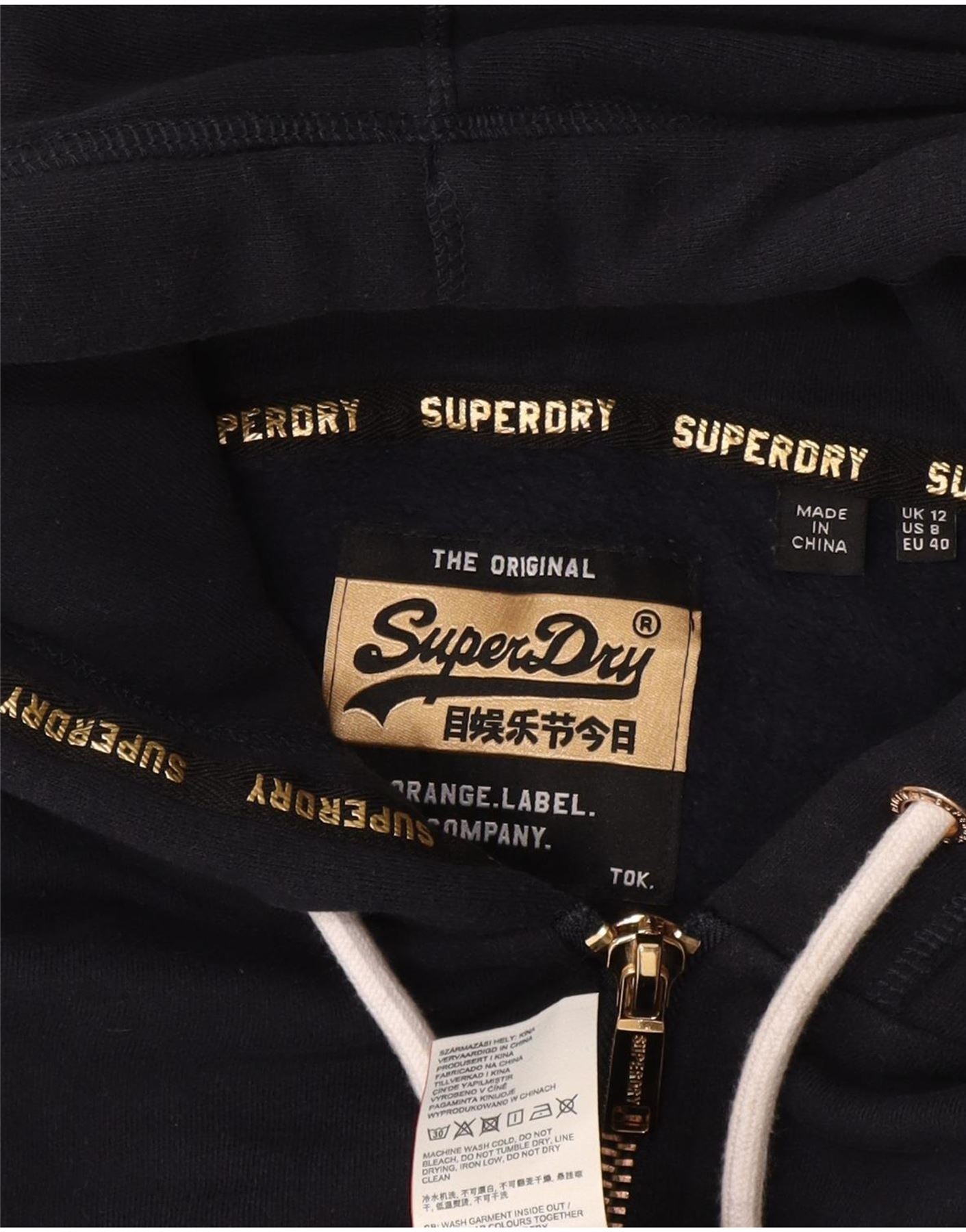 Superdry hættetrøje til kvinder med grafisk lynlås UK 12 Mellem marineblå bomuld