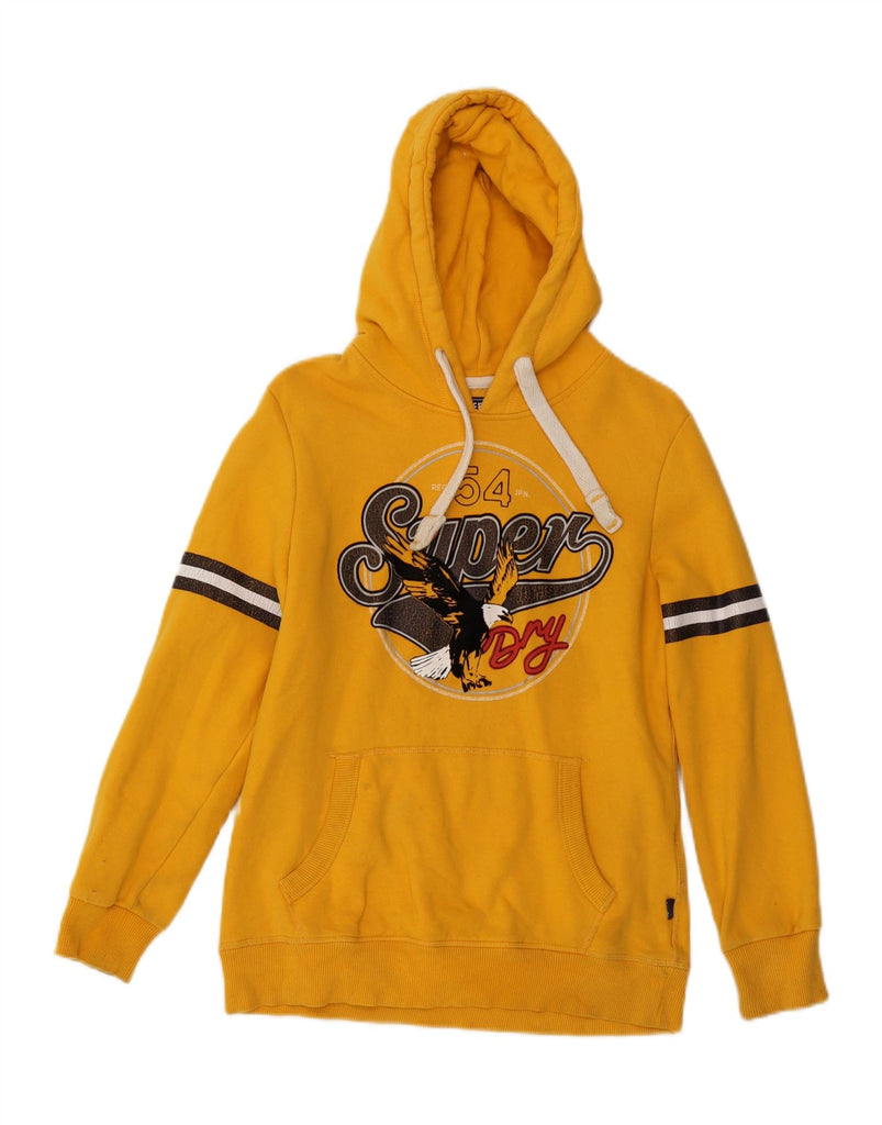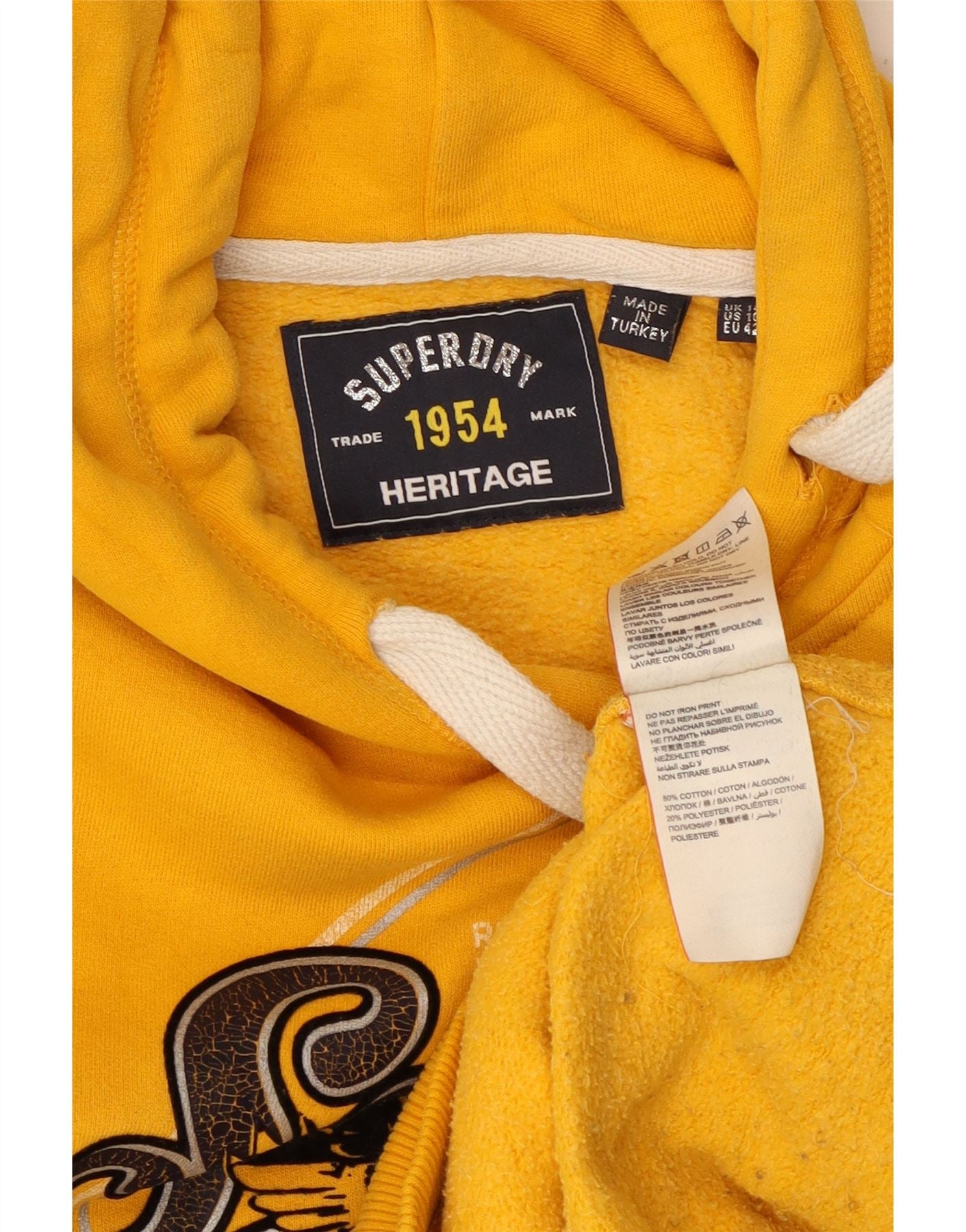SUPERDRY Dame Heritage Grafisk hættetrøje Jumper UK 14 Medium Gul Bomuld