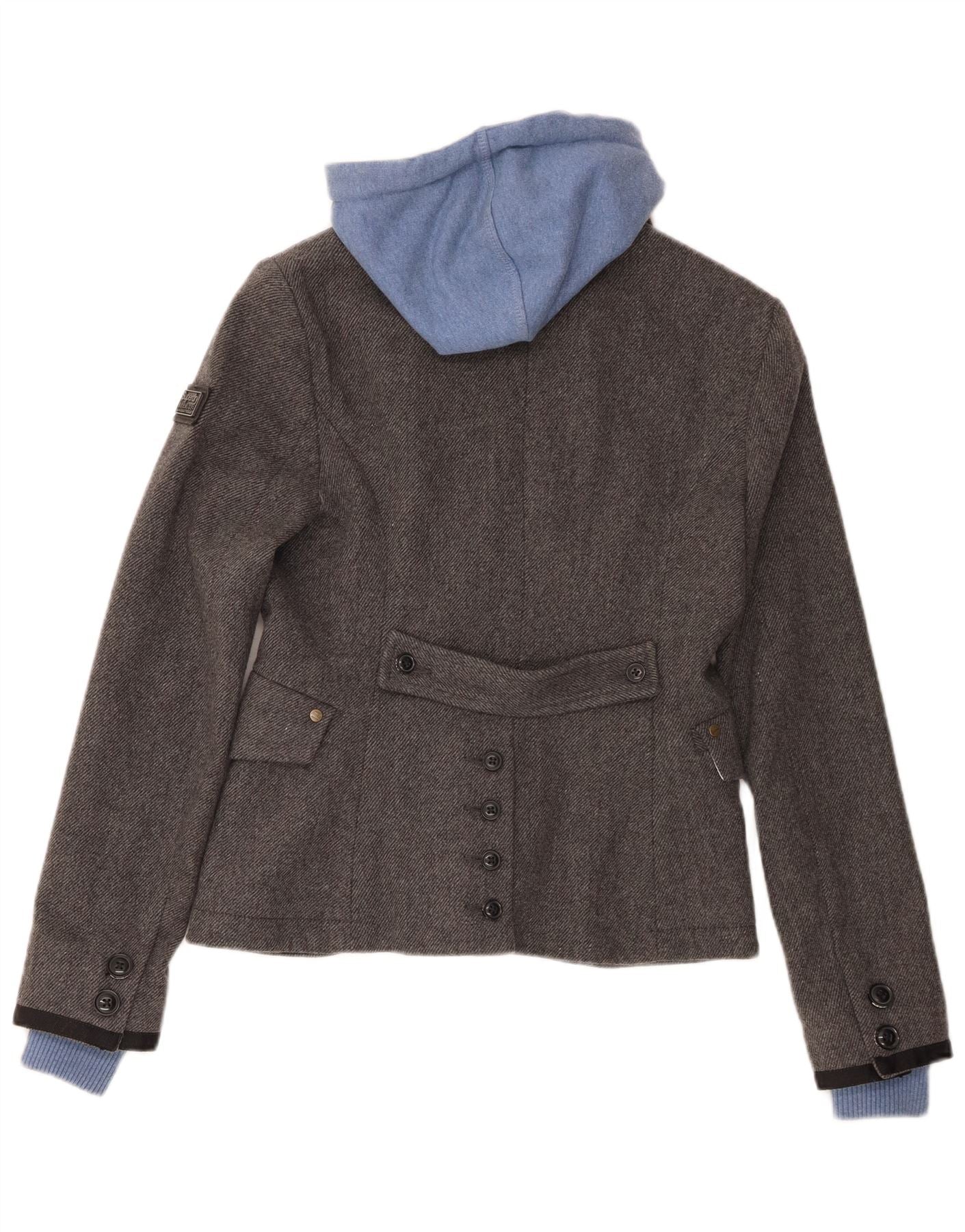 Superdry Dame-hættejakke med 2 knapper, UK 10, lille grå uld
