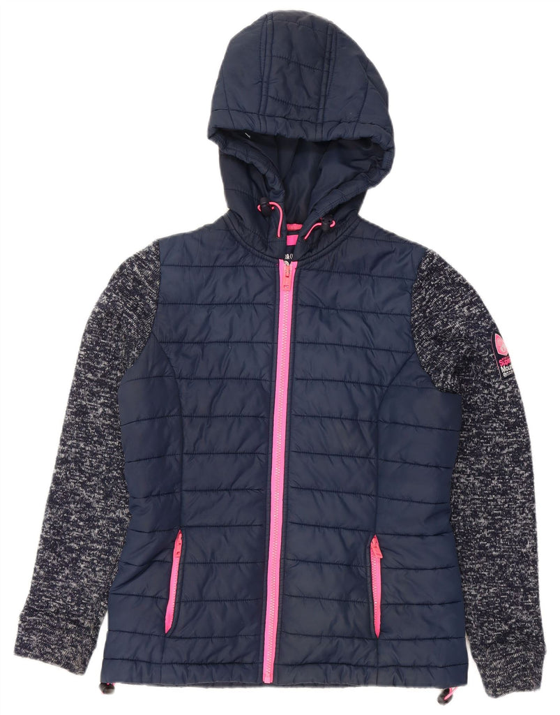 SUPERDRY Womens Hooded Padded Jacket UK 10 Small Navy Blue Flecked