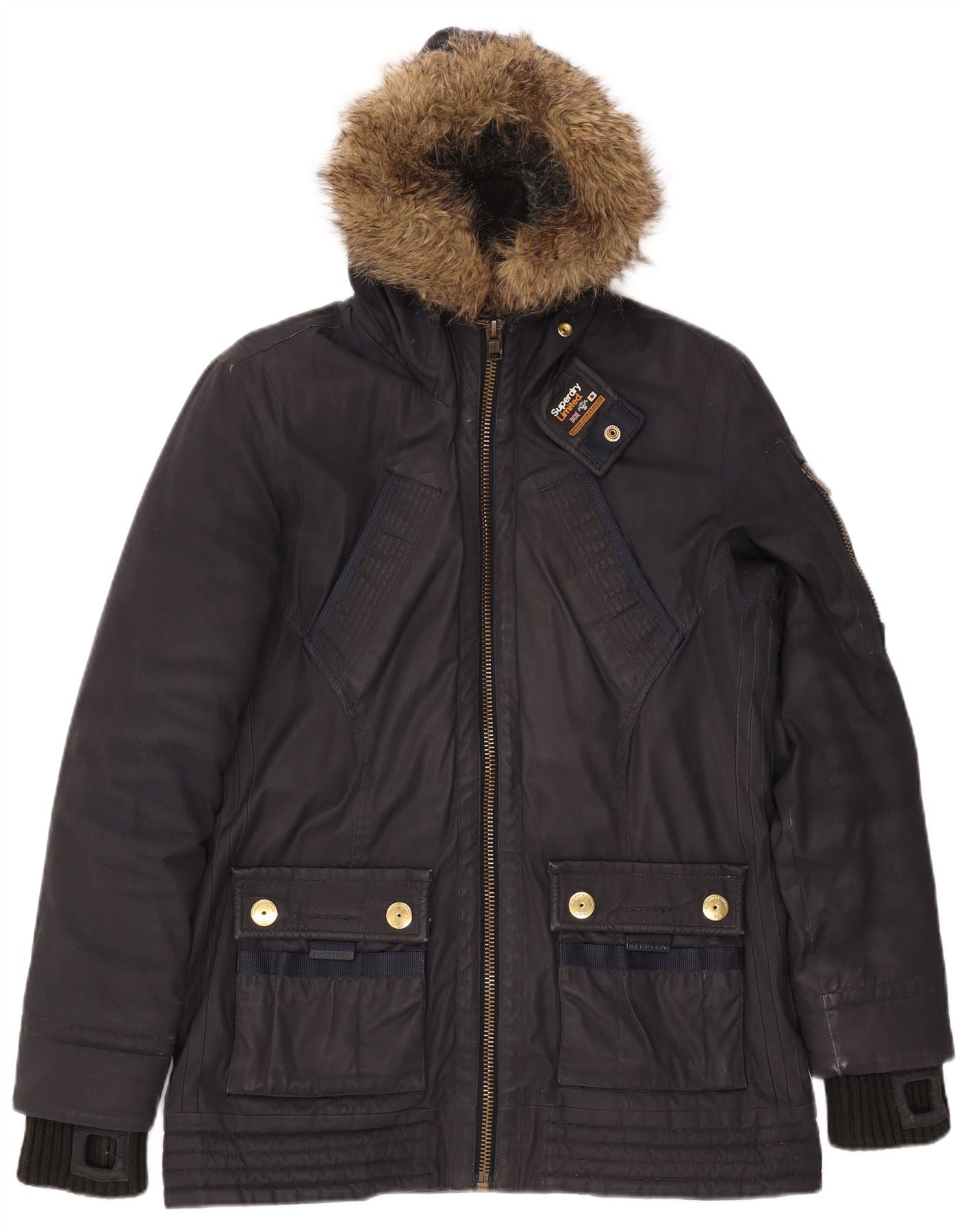 SUPERDRY parkajakke med hætte til kvinder UK 16 Stor marineblå bomuld