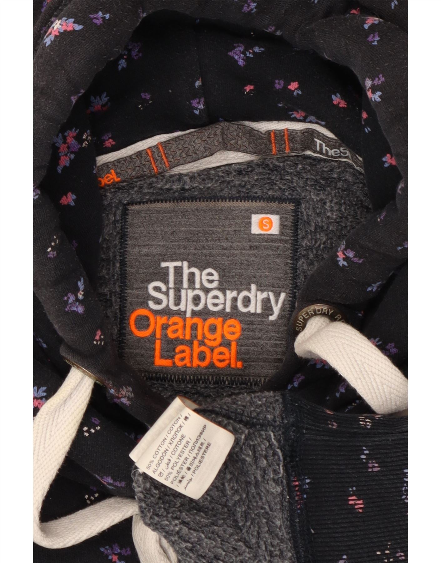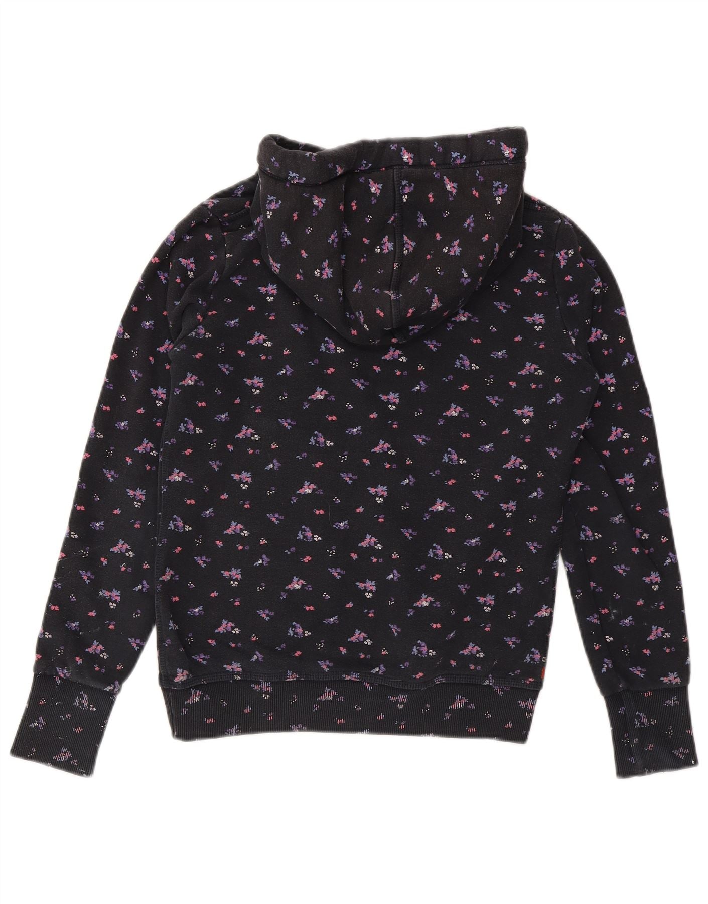 SUPERDRY Womens Hoodie Jumper UK 10 Small Navy Blue Floral Cotton