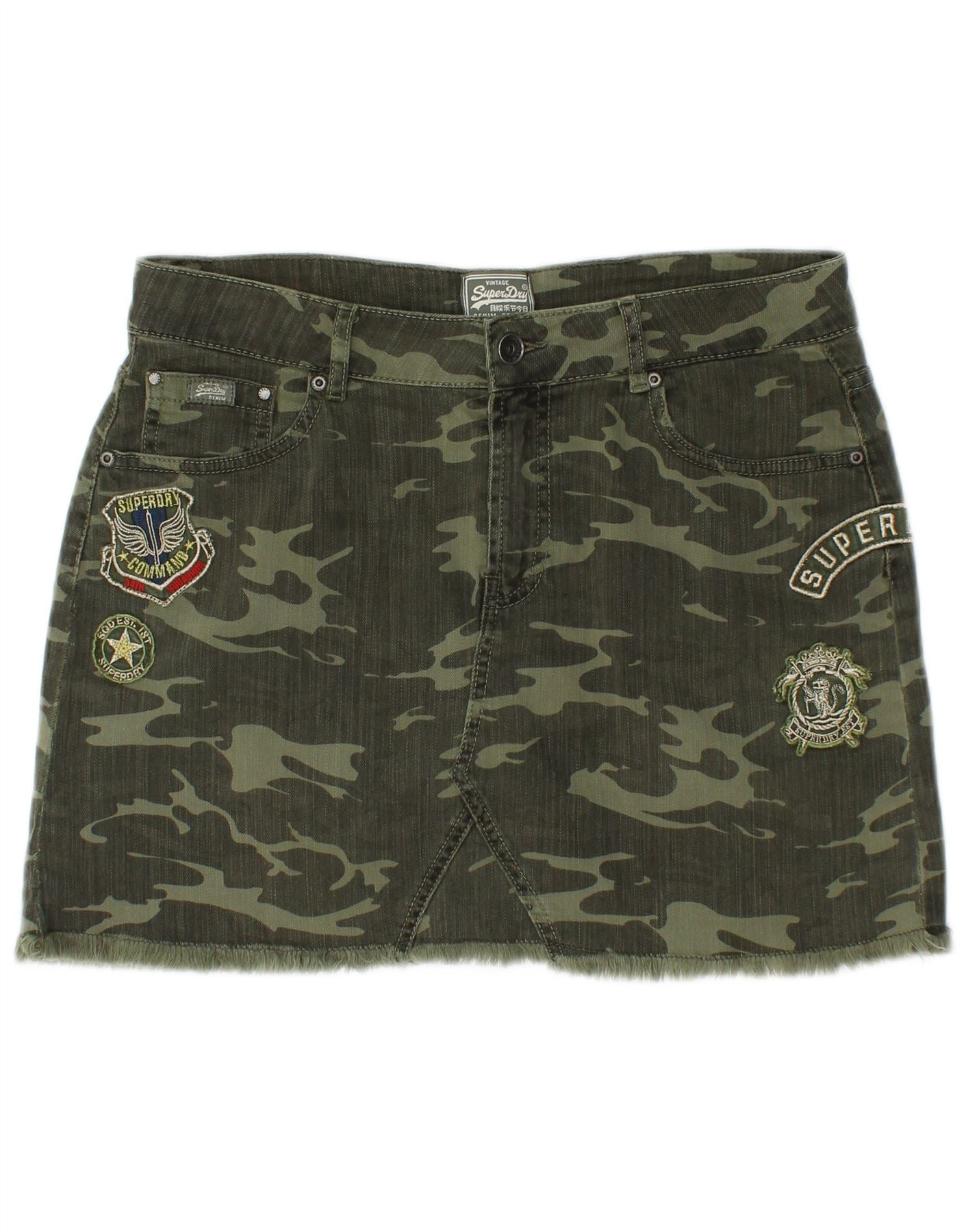 SUPERDRY Dame Mini Denim Nederdel Medium W30 Khaki Camouflage