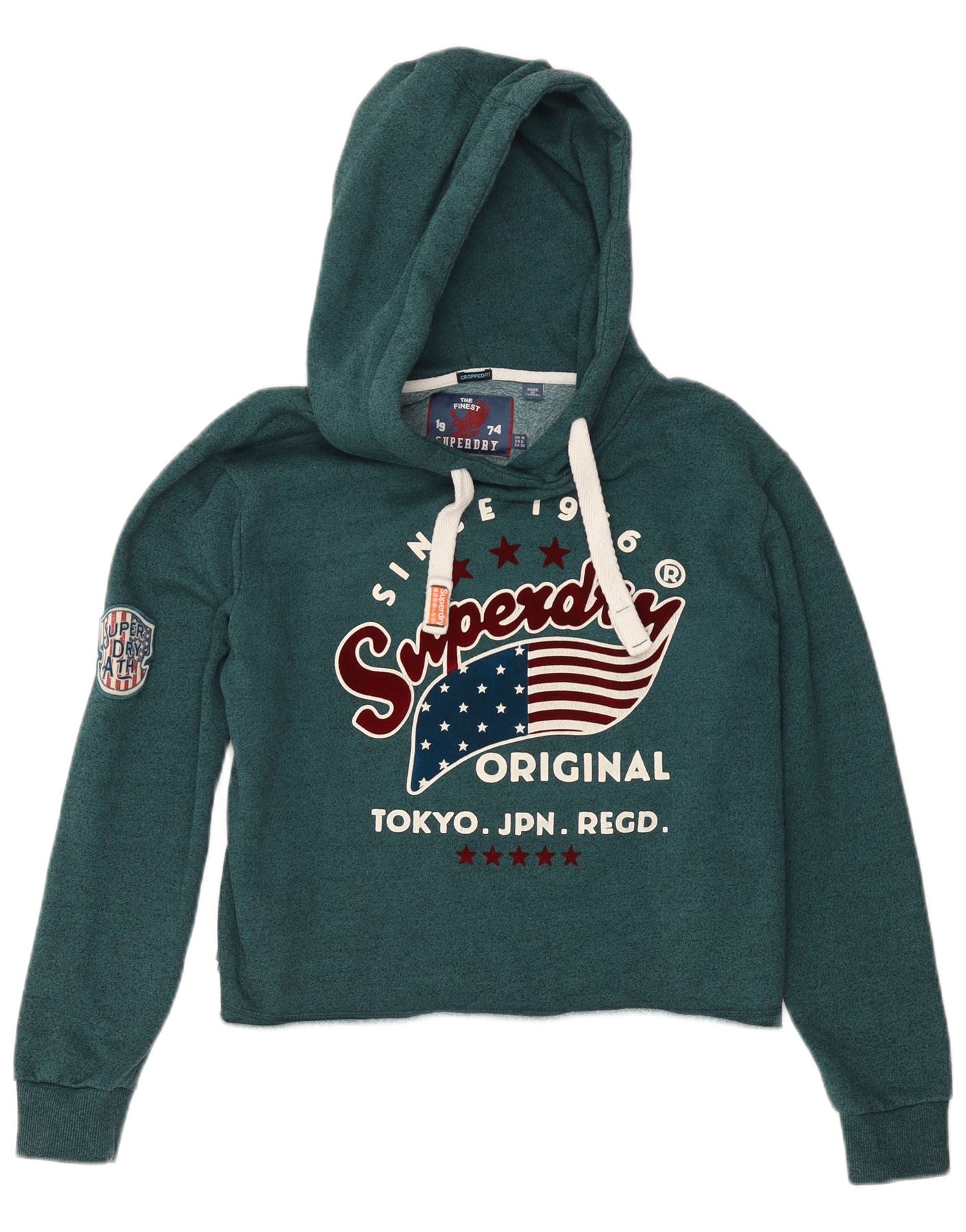 SUPERDRY Dame Oversized Crop Grafisk Hoodie Jumper UK 10 Lille Grøn