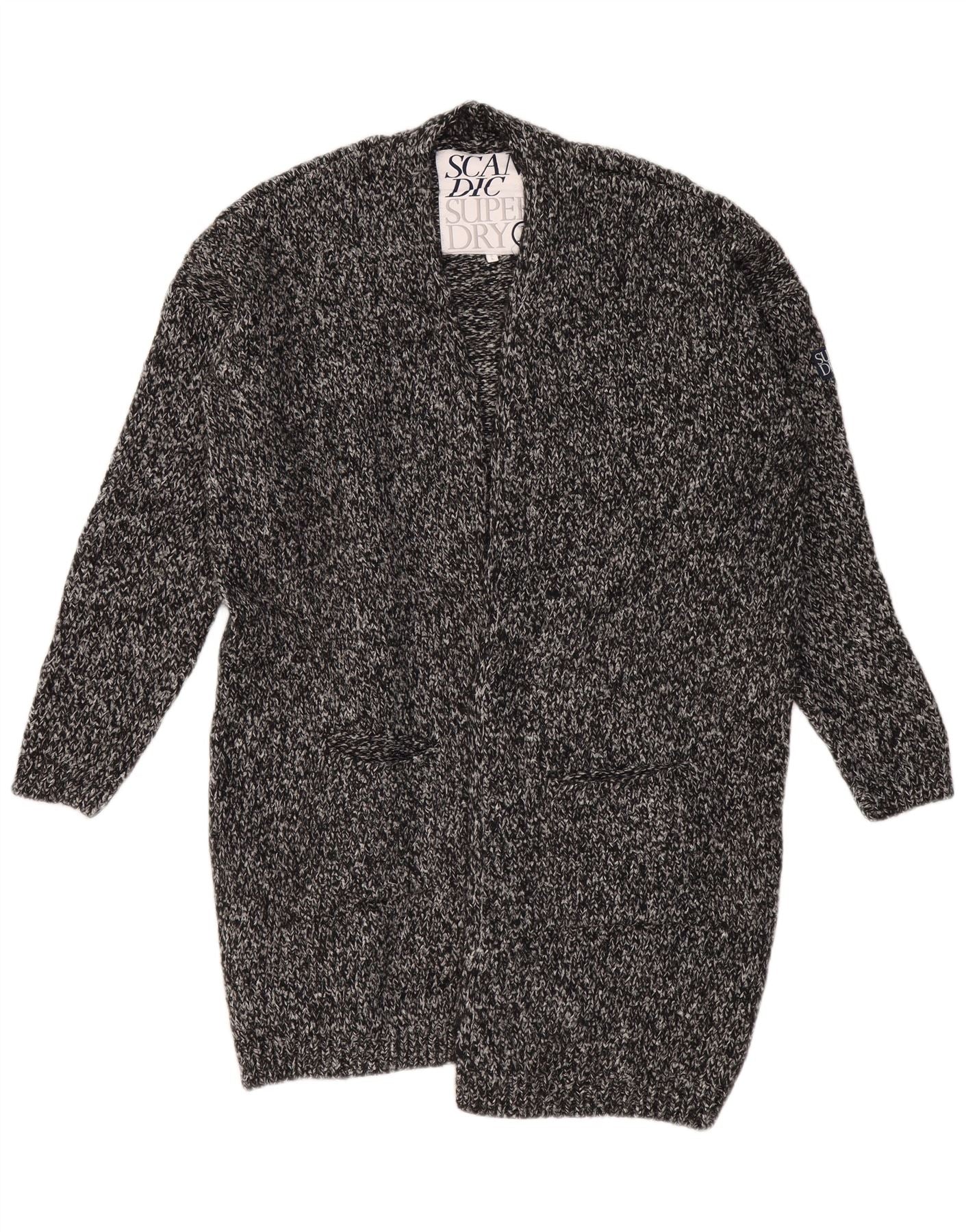SUPERDRY Dame Oversized Longline cardigan sweater UK 18 XL Grå Flecked