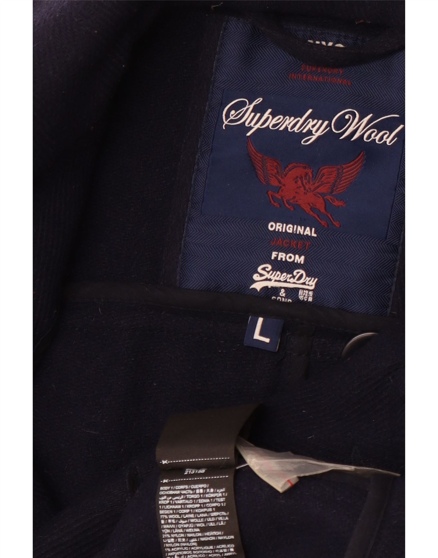 SUPERDRY Womens Pea Coat UK 16 Large Navy Blue Wool