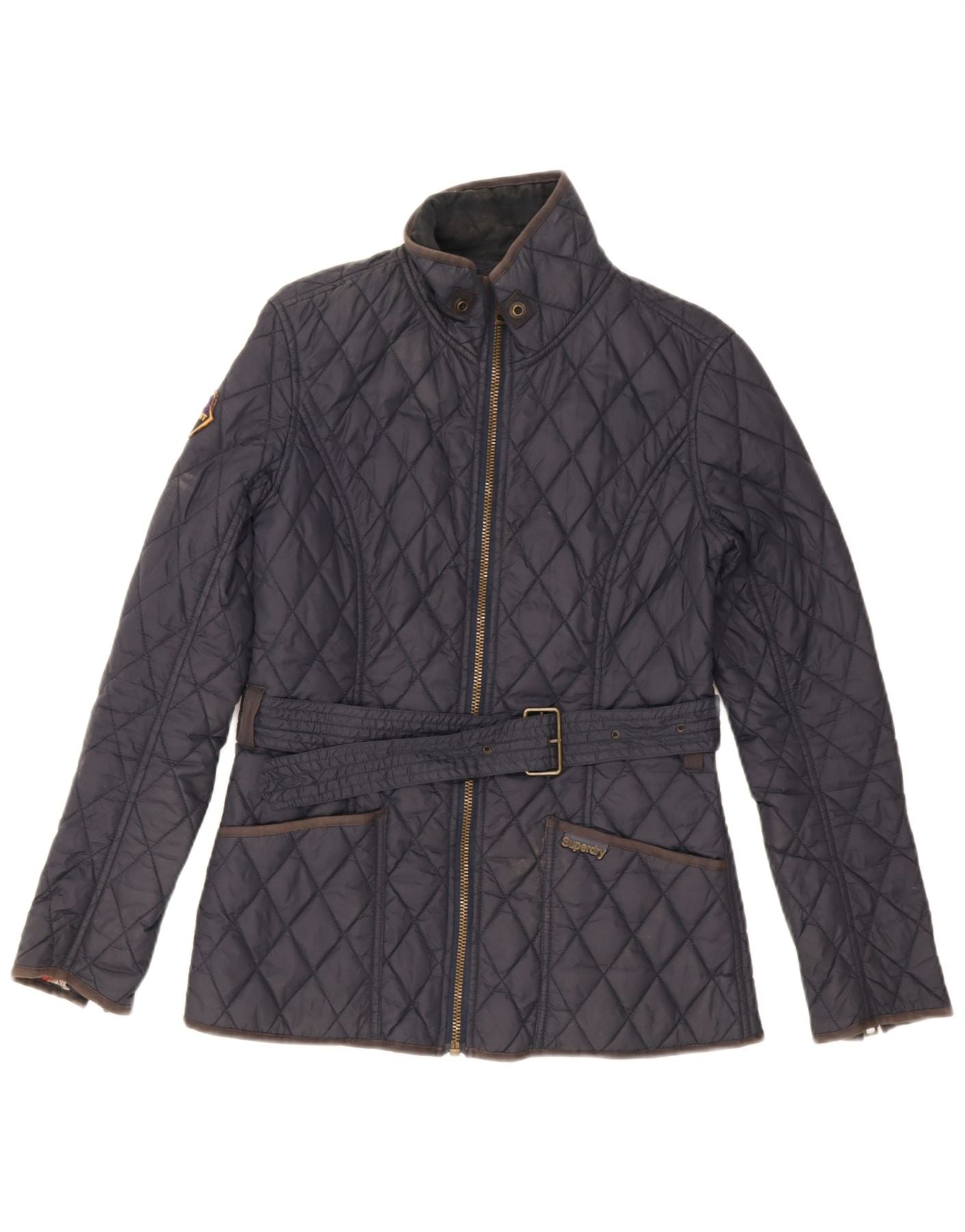 Superdry Quiltet jakke til kvinder UK 12 Mellem marineblå nylon