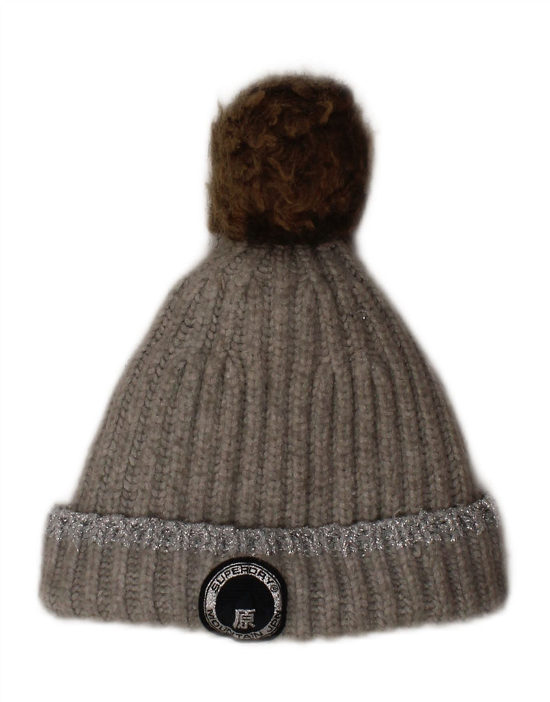 SUPERDRY Womens Sherpa Knit Bobble Hat One Size Grey Polyester Winter