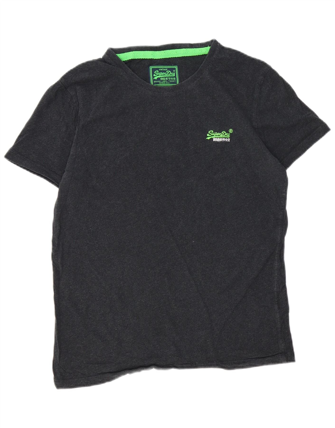 SUPERDRY Dame T-Shirt Top UK 16 Stor Grå Bomuld