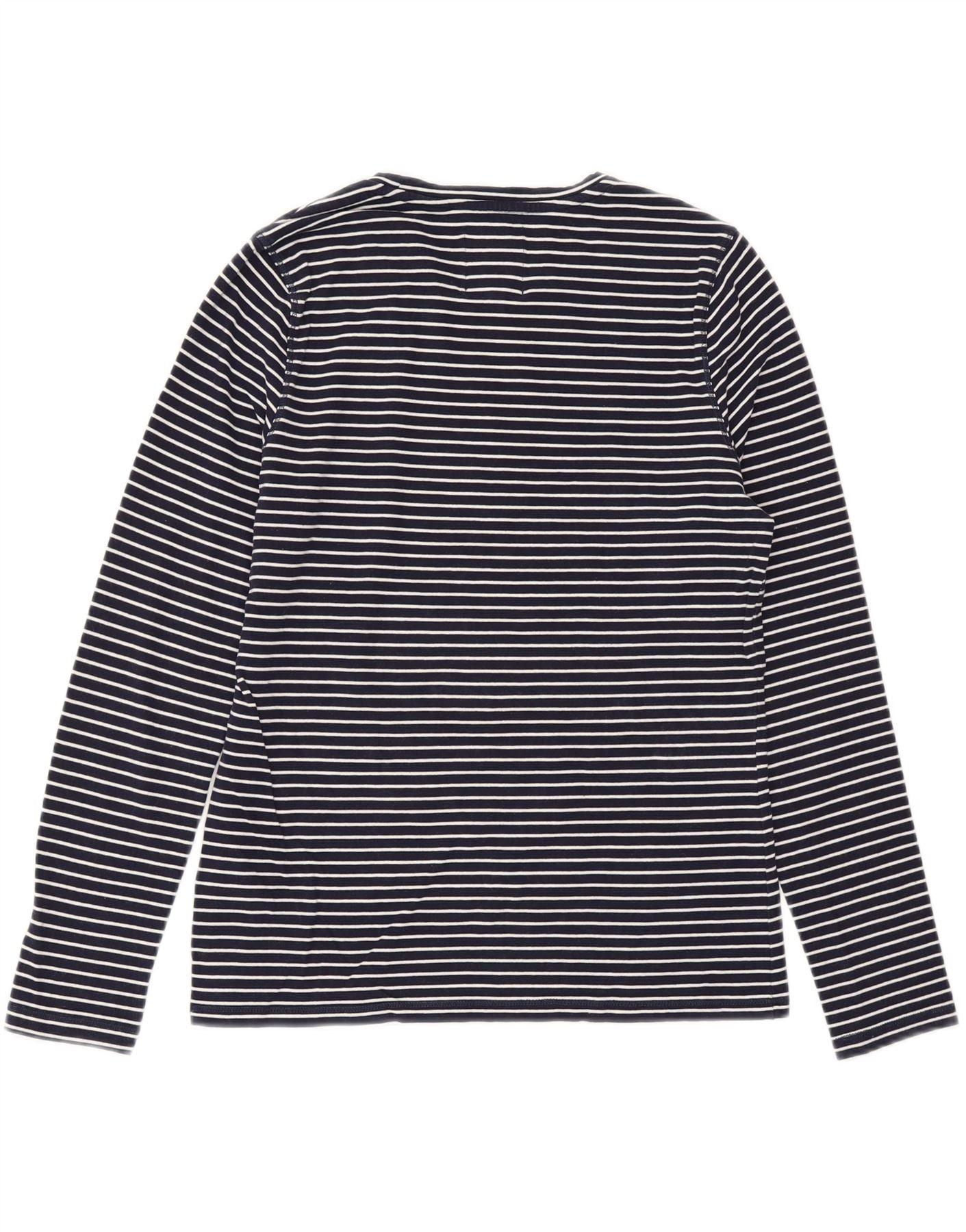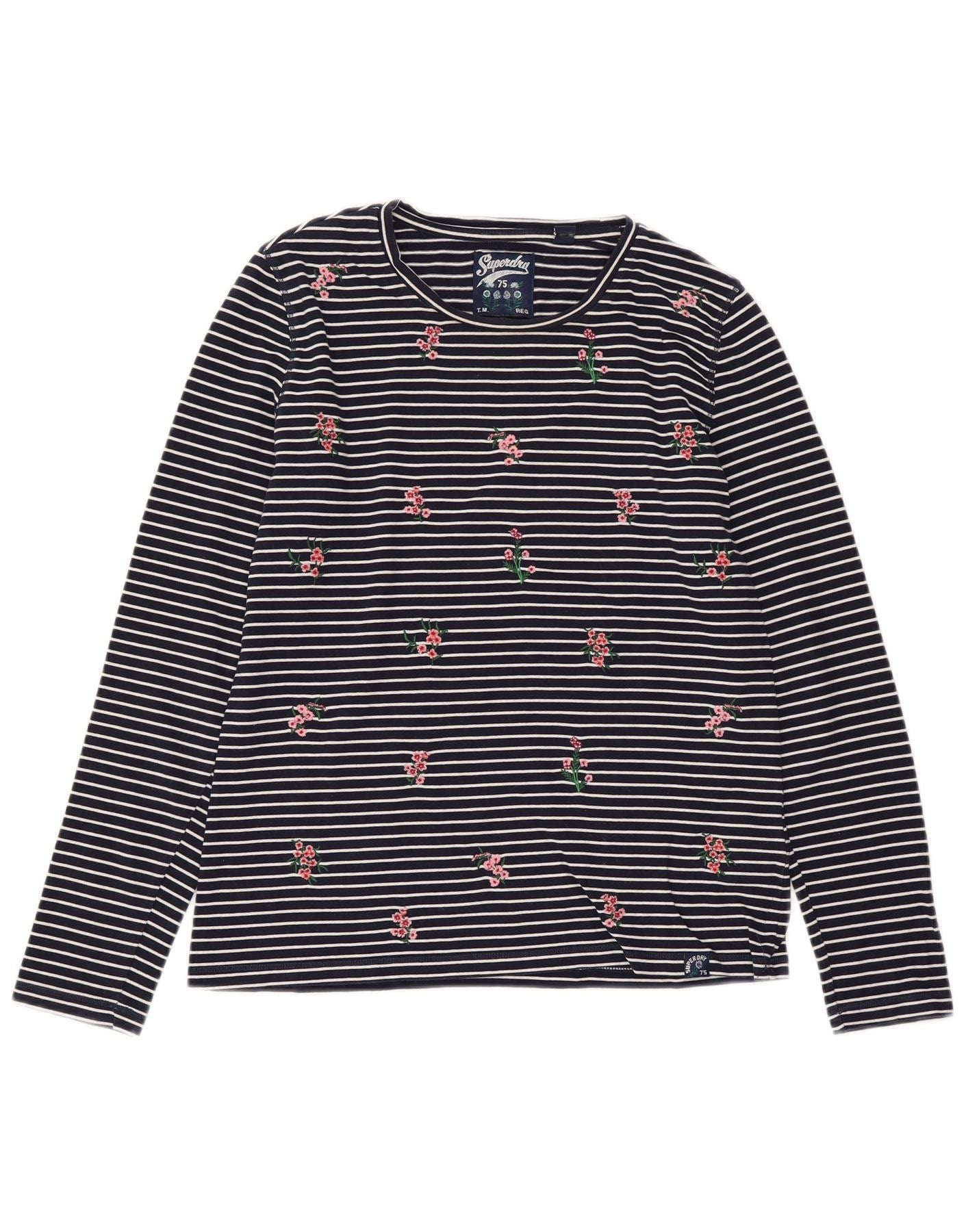 SUPERDRY Dame Top Langærmet UK 10 Lille Marineblå Stribet Bomuld