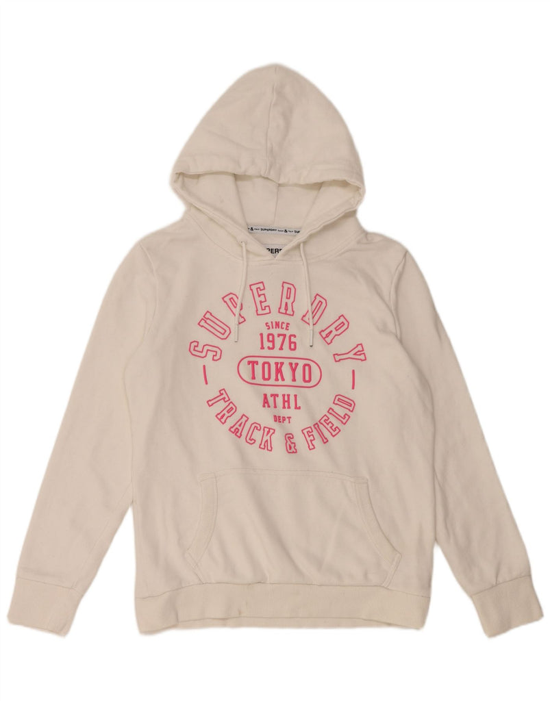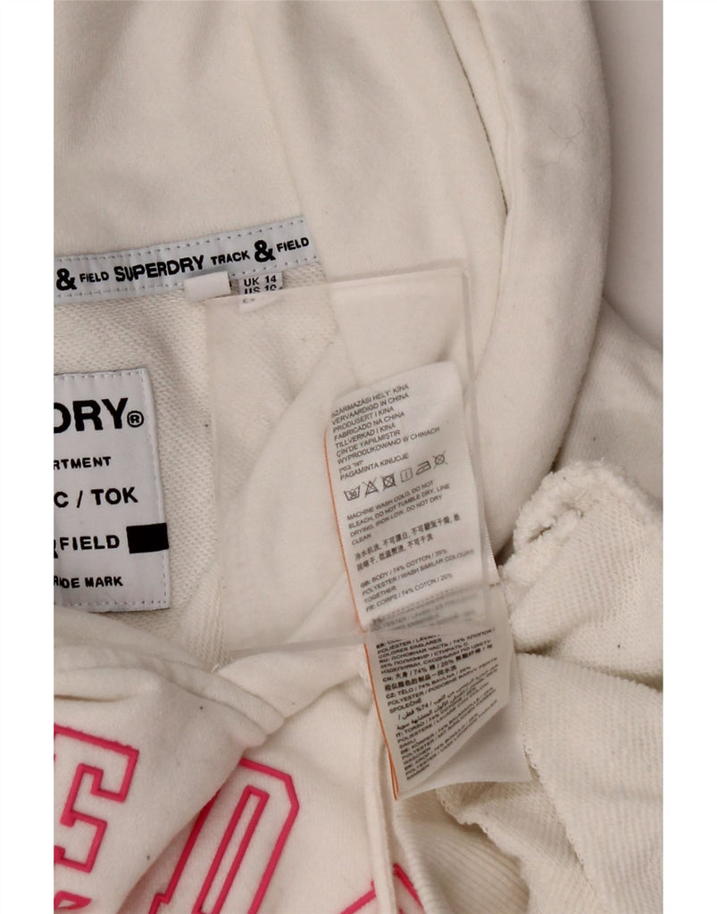 SUPERDRY Womens Track & Field Graphic Hoodie Jumper UK 14 Large Off White