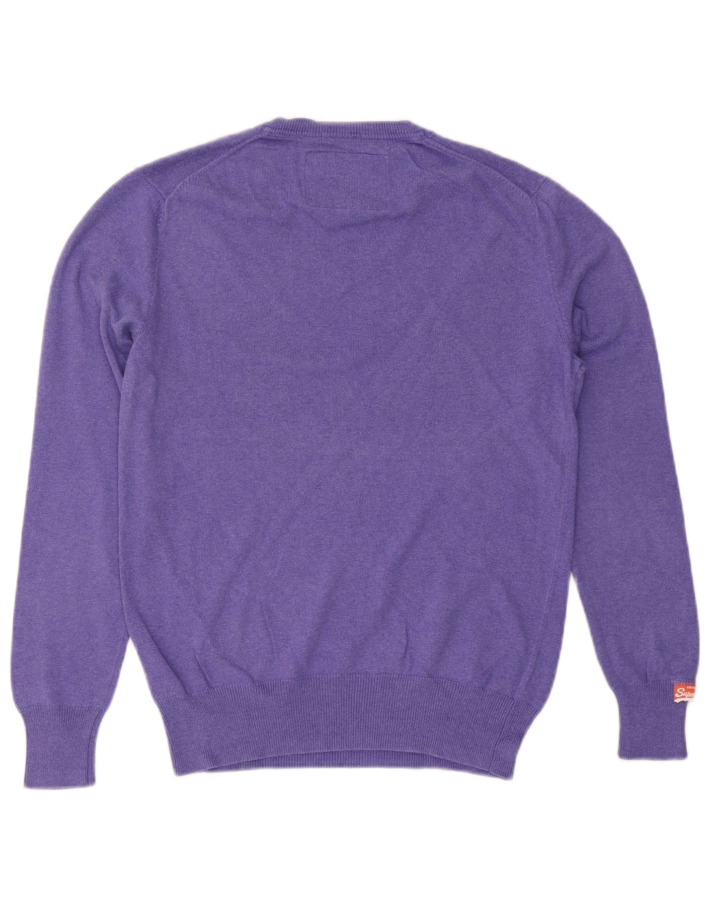SUPERDRY Dame V-hals sweater UK 14 Medium Lilla Bomuld