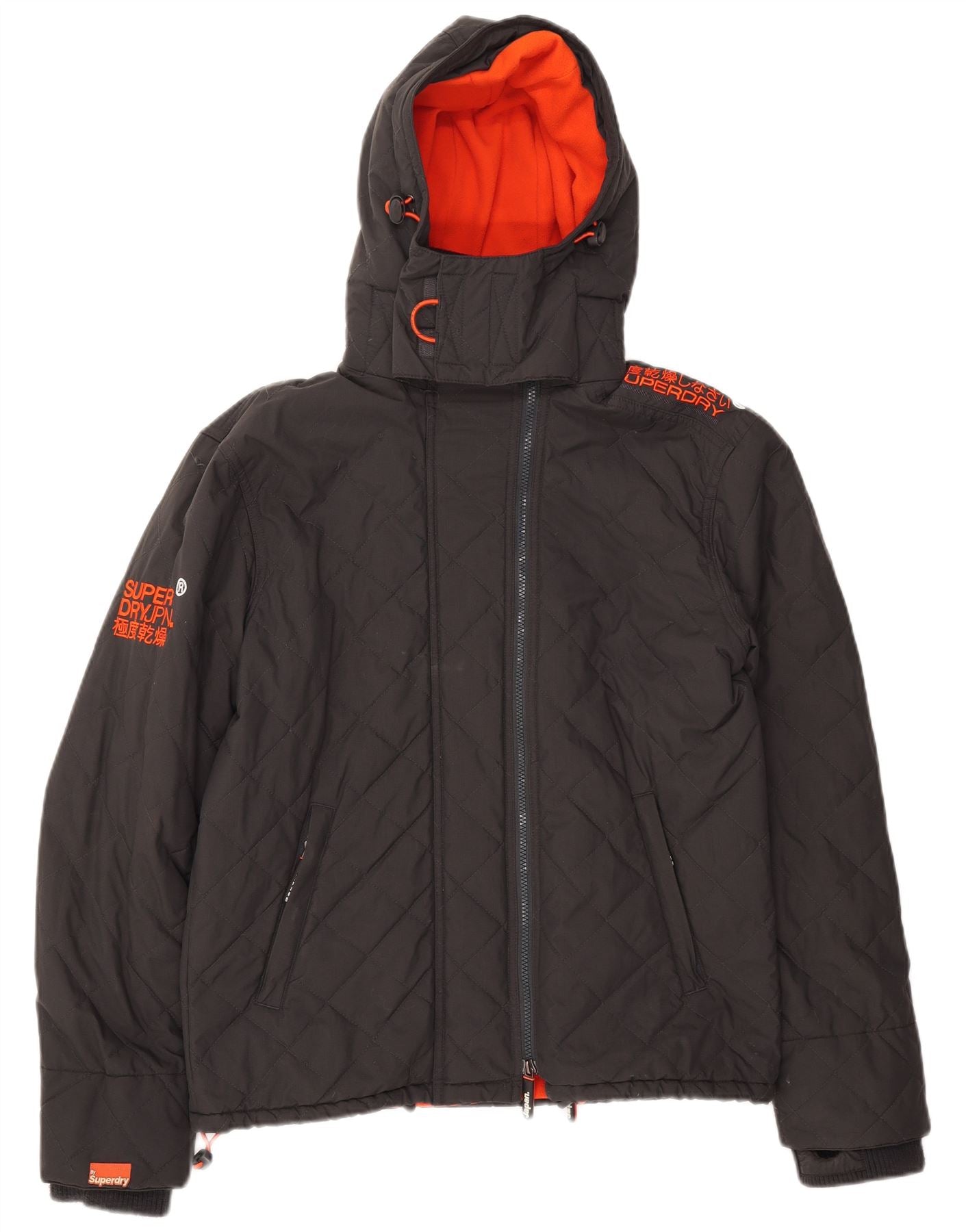 SUPERDRY Womens Windcheater Hooded Windbreaker Jacket UK 16 Large Grey