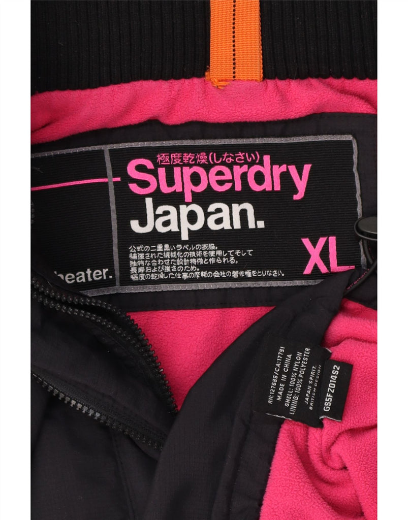 SUPERDRY Womens Windcheater Hooded Windbreaker Jacket UK 18 XL Black