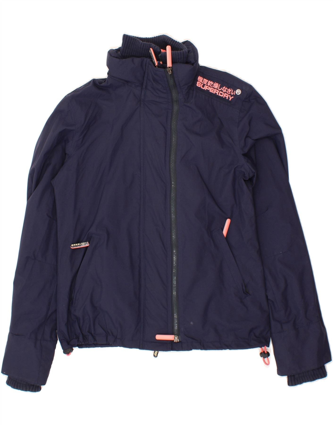 SUPERDRY Womens Windcheater Rain Jacket UK 14 Medium Navy Blue Nylon