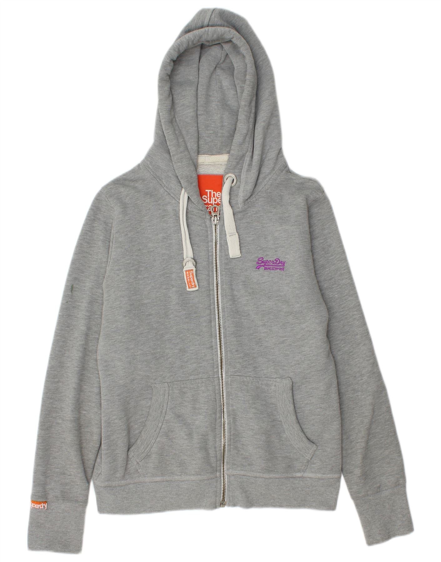 SUPERDRY hættetrøje til kvinder med lynlås UK 14 Stor grå flækket bomuld