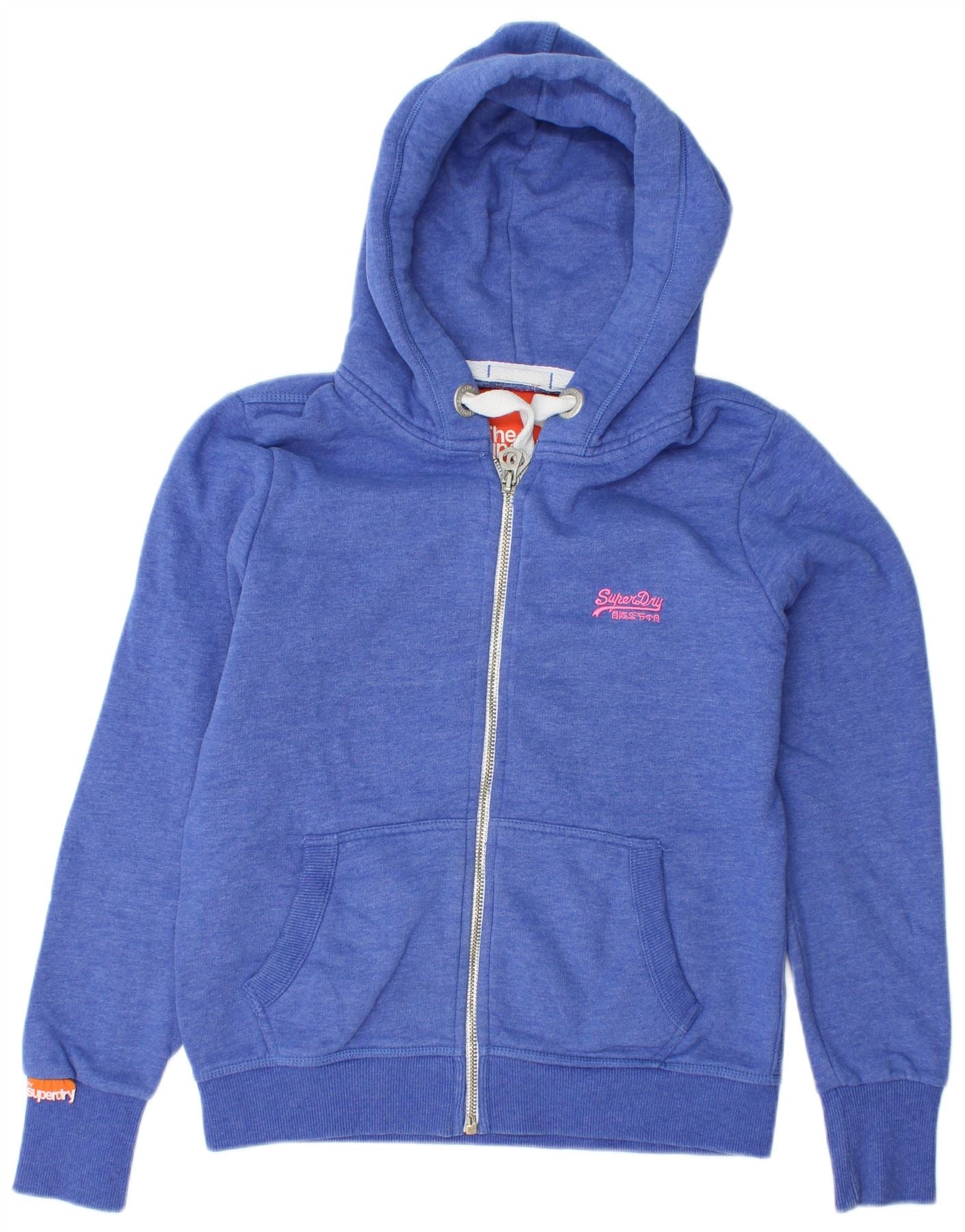 SUPERDRY hættetrøje til kvinder med lynlås UK 16 Stor blå bomuld