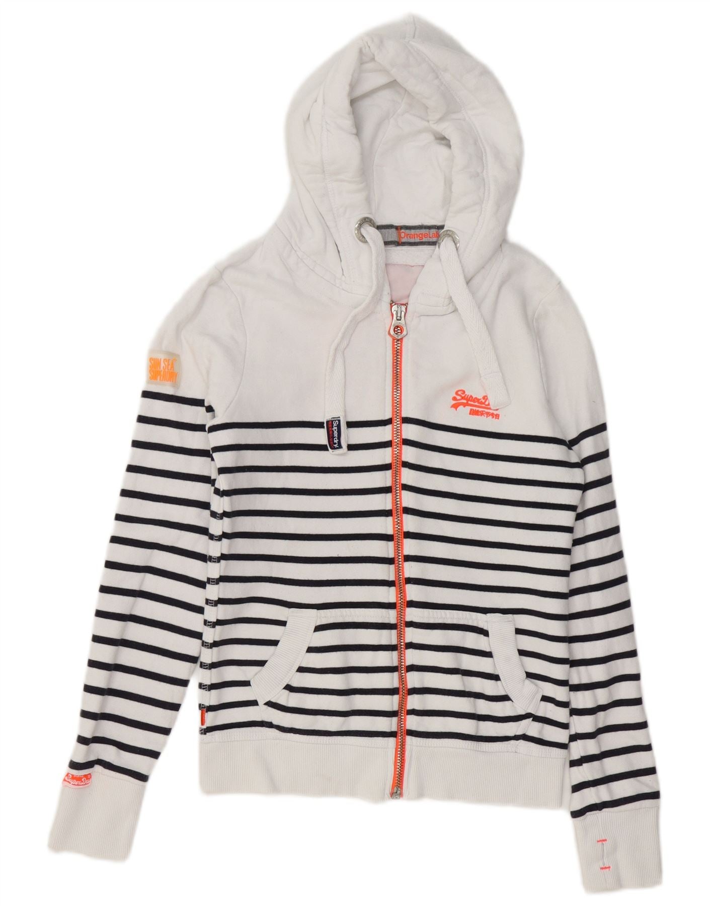 SUPERDRY hættetrøje til kvinder med lynlås UK 6 XS Hvidstribet bomuld