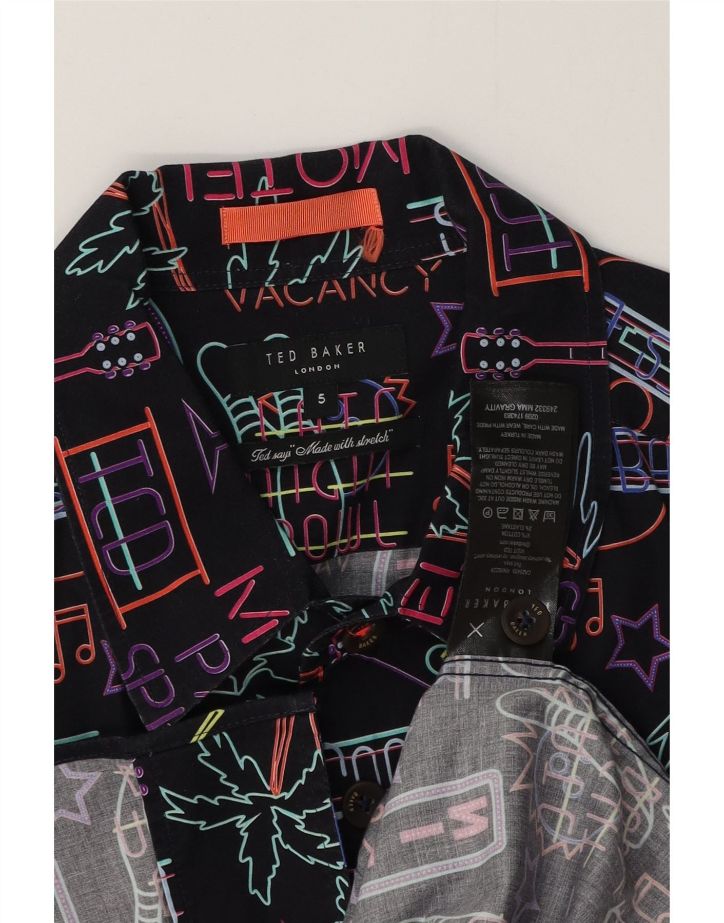 Ted Baker Herre grafisk kortærmet skjorte størrelse 5 XL Flerfarvet hawaiiansk
