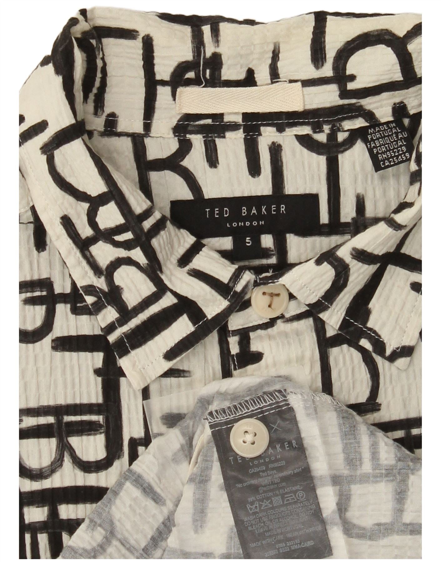 TED BAKER Herre grafisk kortærmet skjorte størrelse 5 XL Hvid bomuld