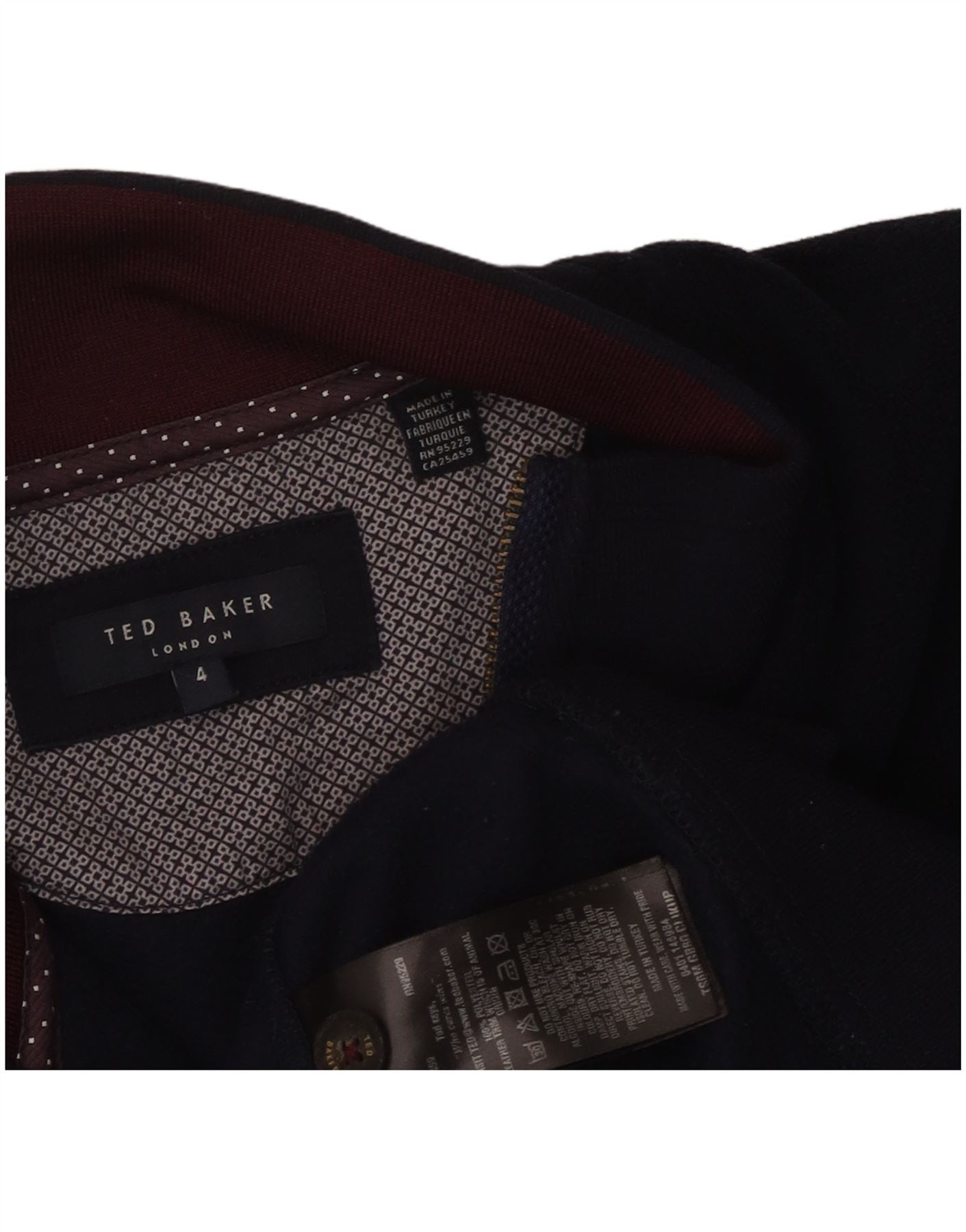 TED BAKER Mens Zip Neck Fleece Jumper Size 4 Large Navy Blue Polyester