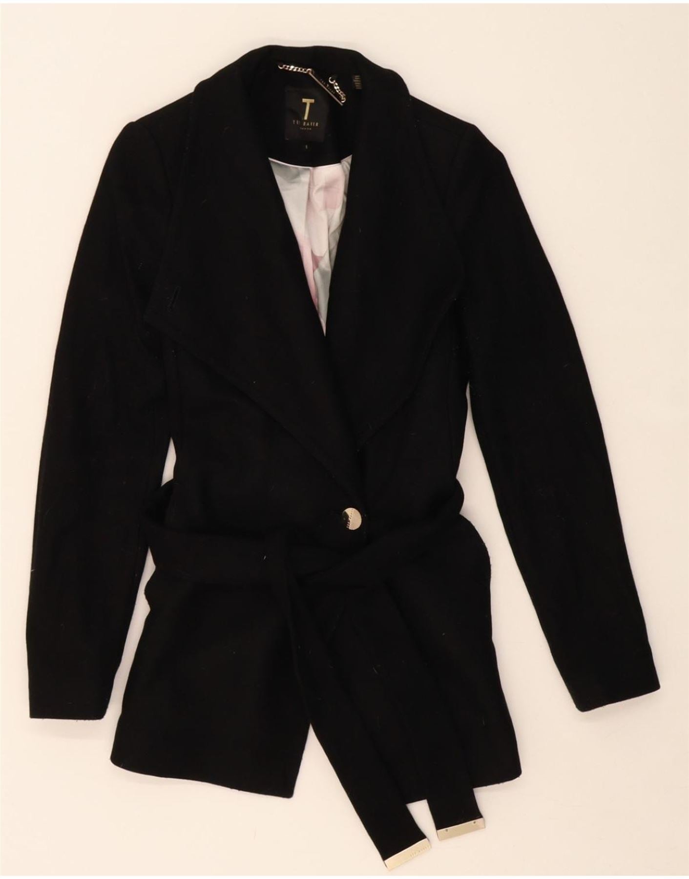 TED BAKER Womens 1 Button Blazer Jacket Size 1 XS Black Wool