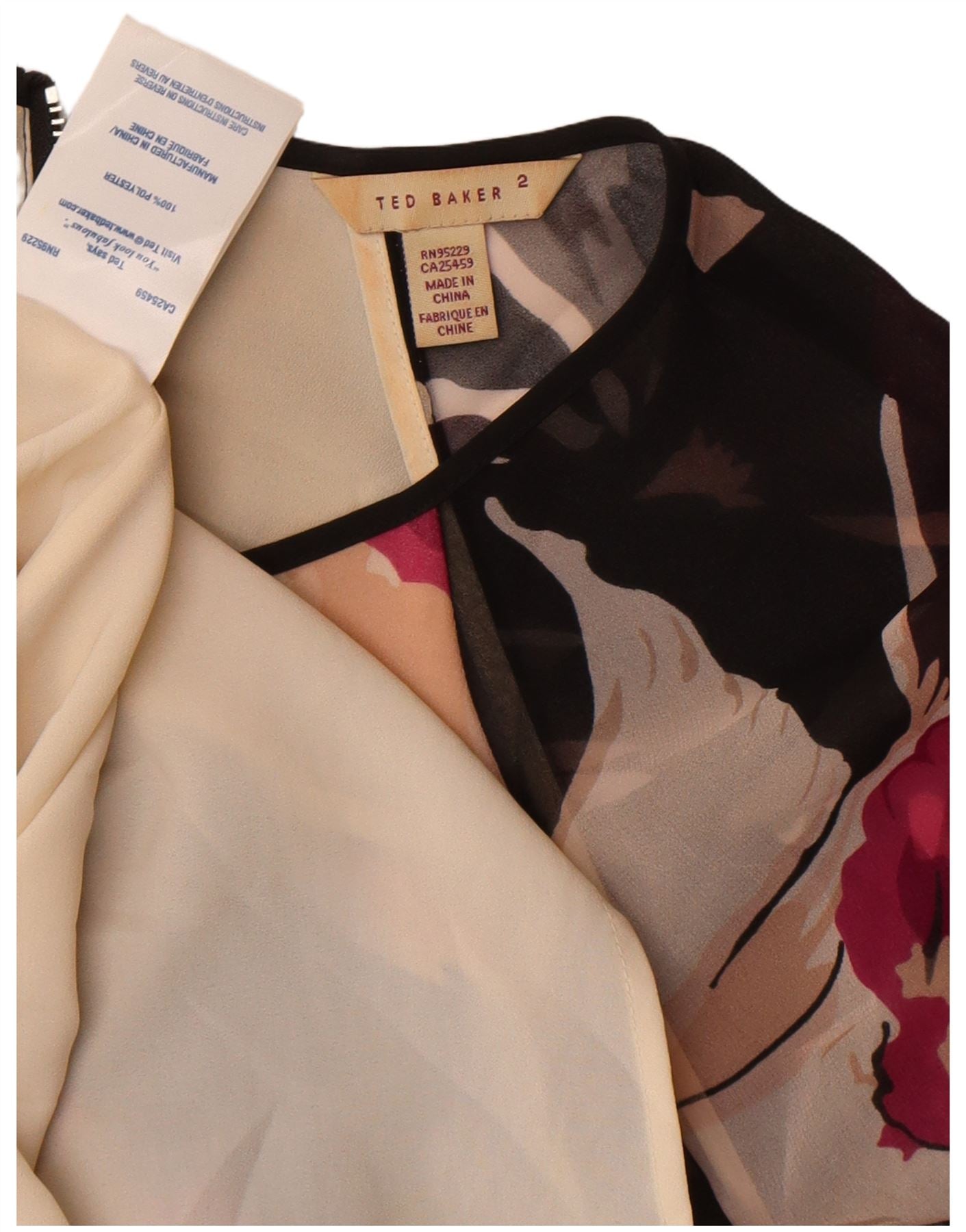 Ted Baker Dame Langærmet Skede Kjole Størrelse 2 Small Black Floral