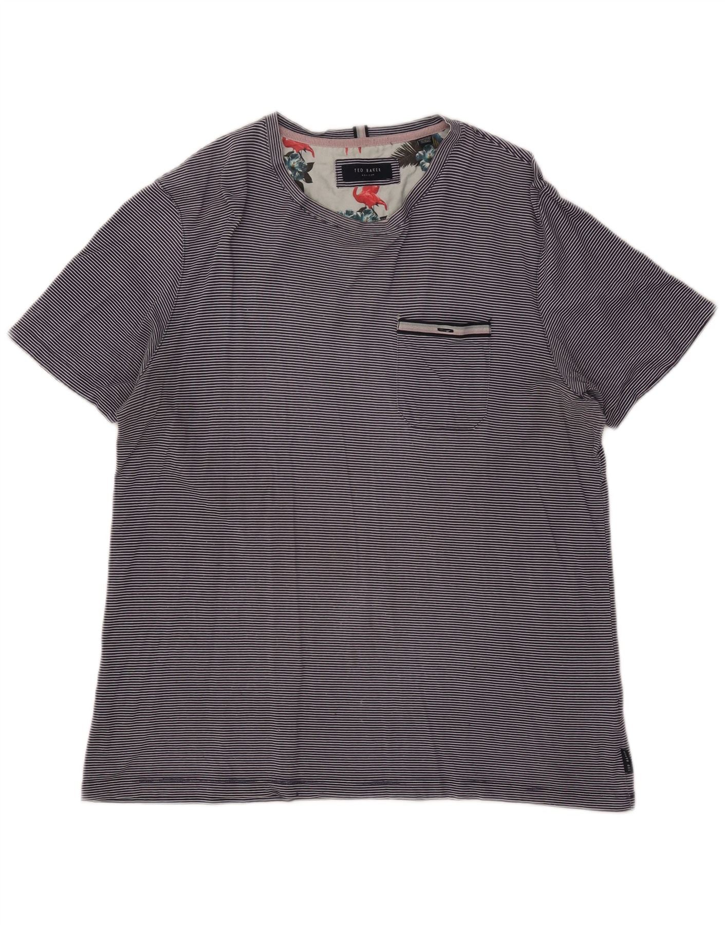 TED BAKER T-shirt top til kvinder størrelse 4 Large Marineblå nålestribet bomuld