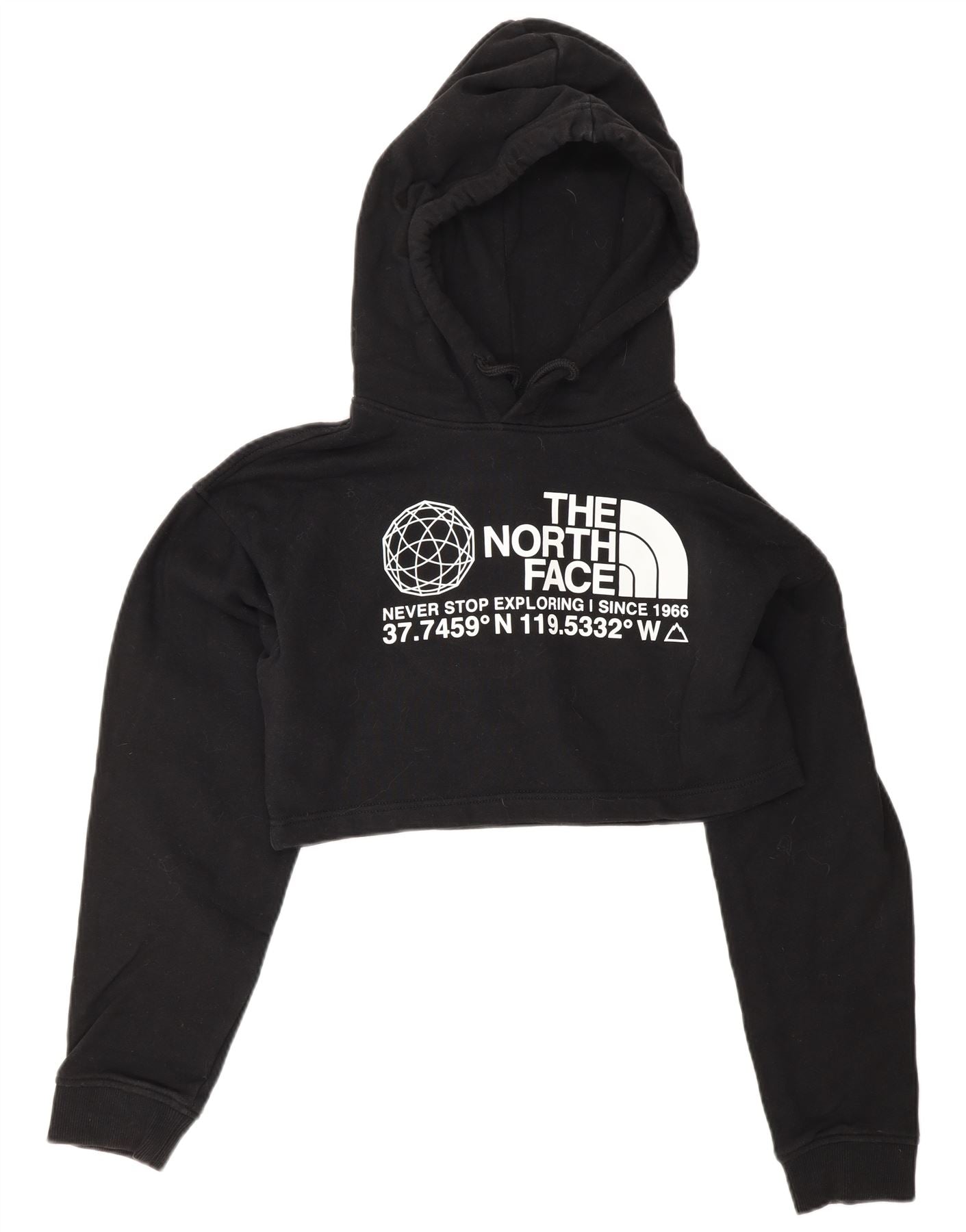 THE NORTH FACE Dame Oversized Crop Graphic Hoodie Jumper UK 6 XS Sort