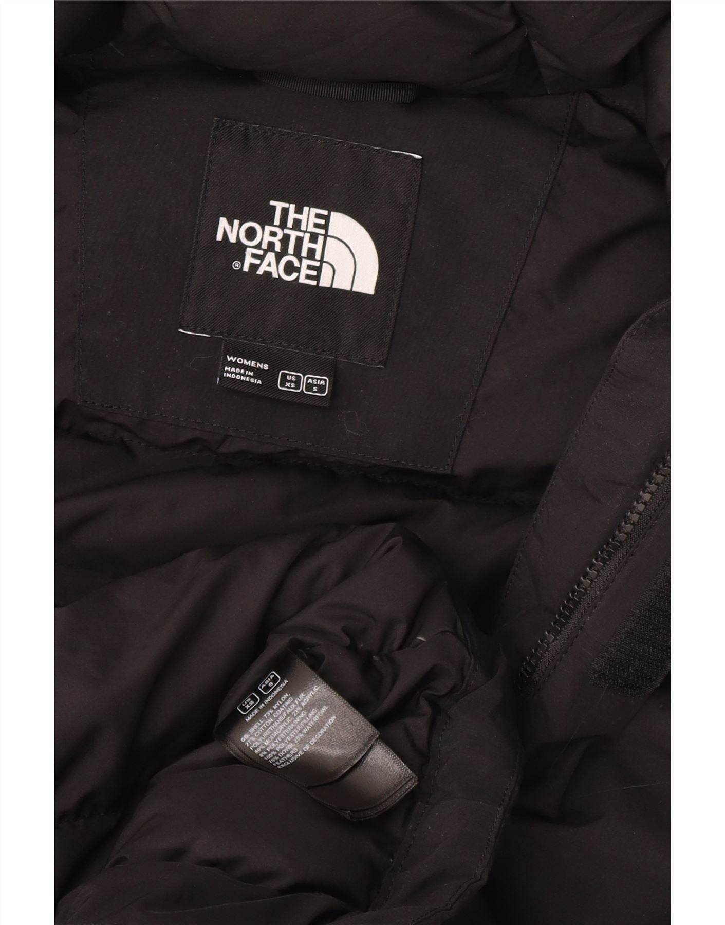 THE NORTH FACE Dameoversized hættepolstret frakke UK 6 XS sort nylon
