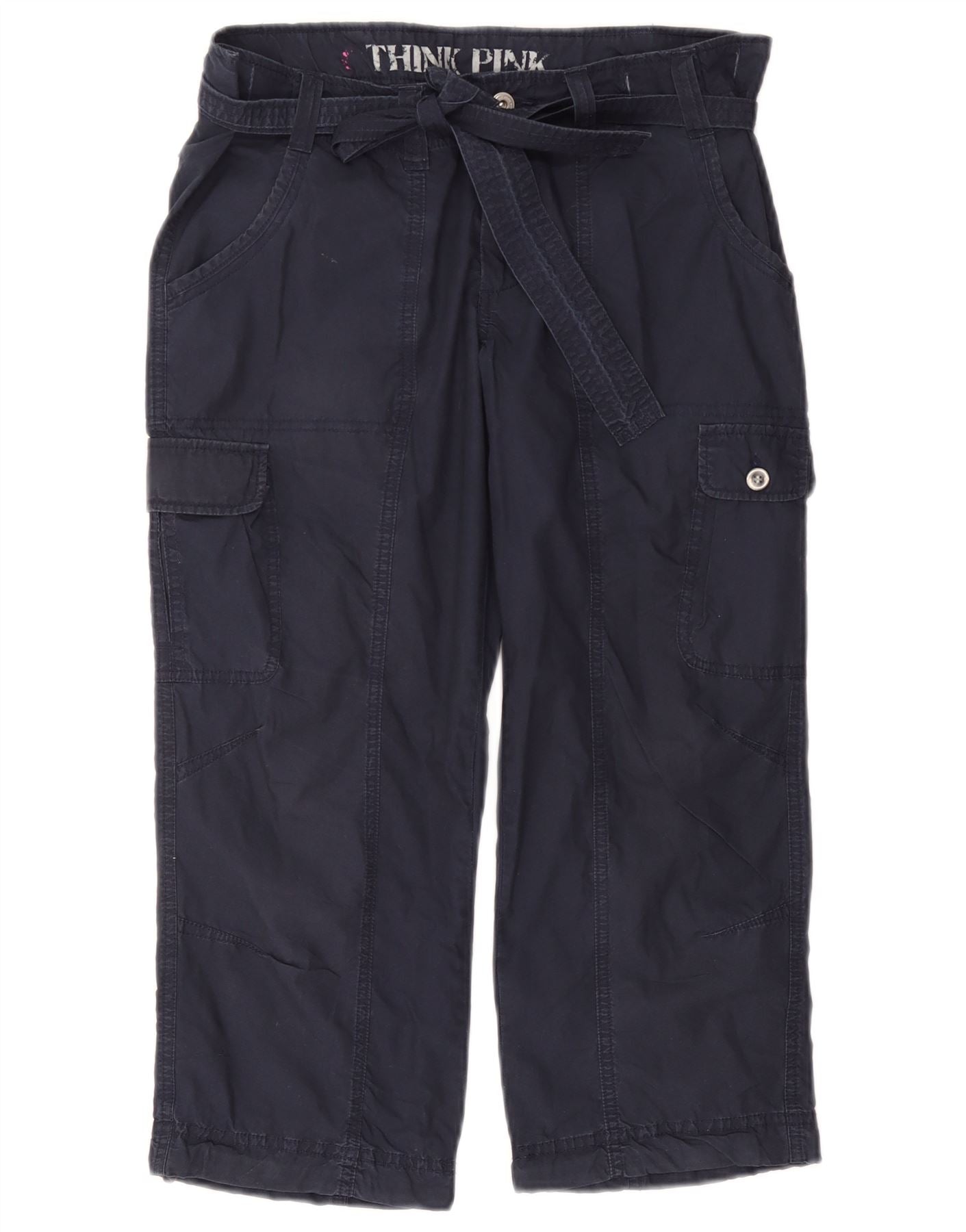 Tænk Pink Dame Straight Cargo Capri Bukser Large W32 L22 Navy Blue