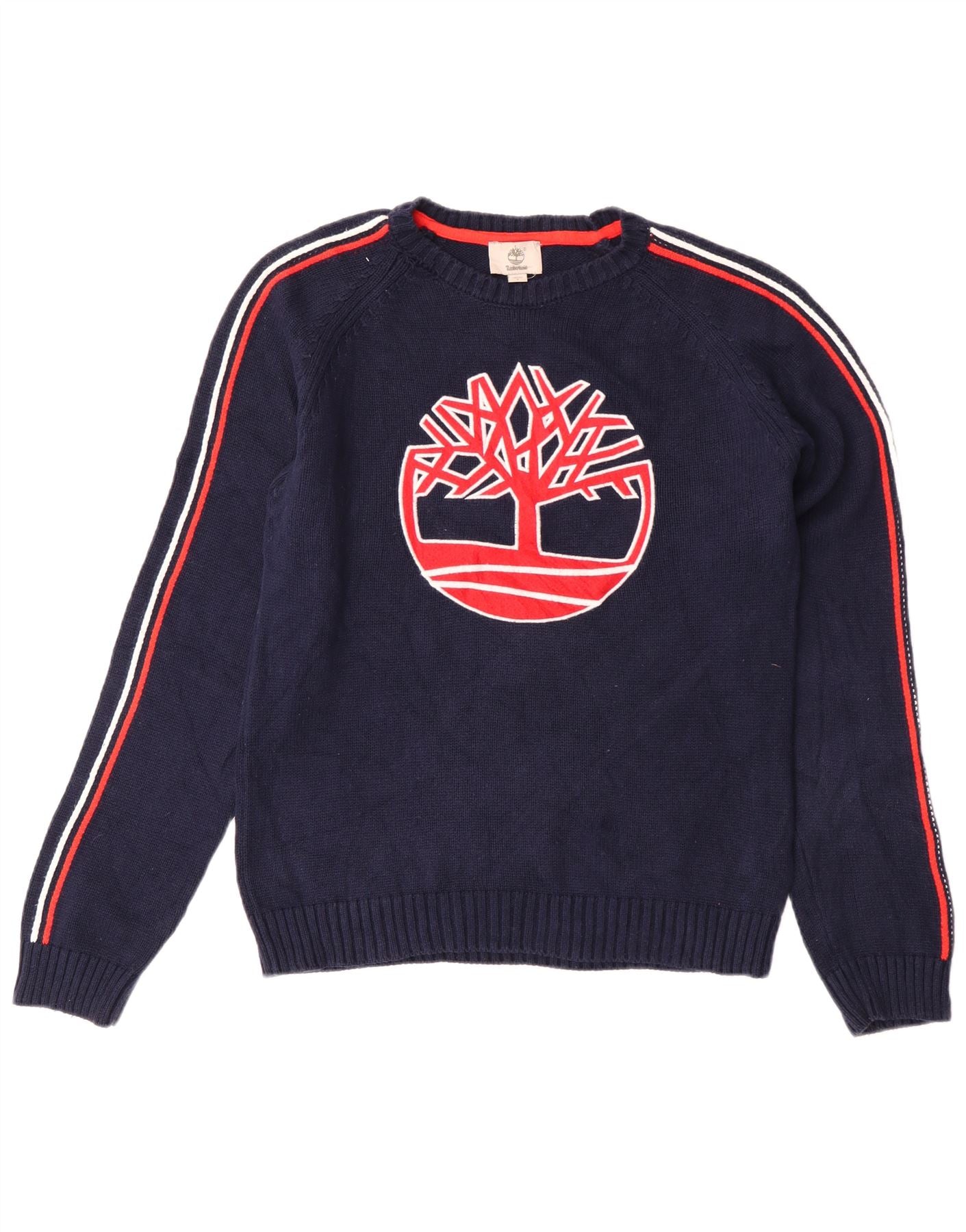 - AI beskrivelse: Denne Timberland trøjetrøje til drenge med rund hals er lavet af blød marineblå 100 procent bomuldsstrik. Den har en klassisk rund hals og lange ærmer. Røde og hvide striber løber ned ad hvert ærme og tilføjer et sporty touch. En fremtrædende rød og hvid Timberland-logografik er vist på fronten. Den almindelige pasform sikrer behageligt slid til hverdagsstilen.
