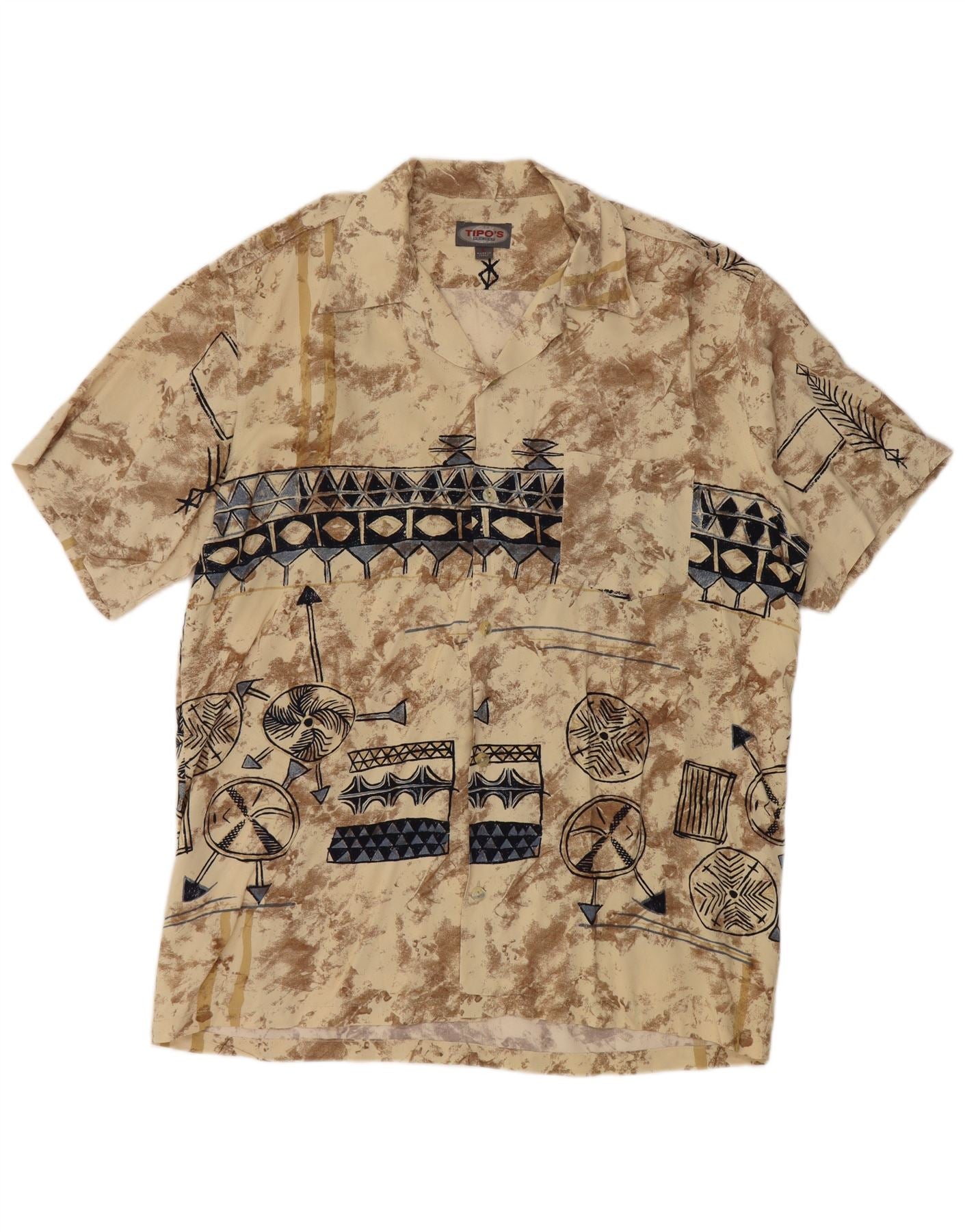TIPO' S Mens Short Sleeve Shirt Large Beige Geometric Viscose