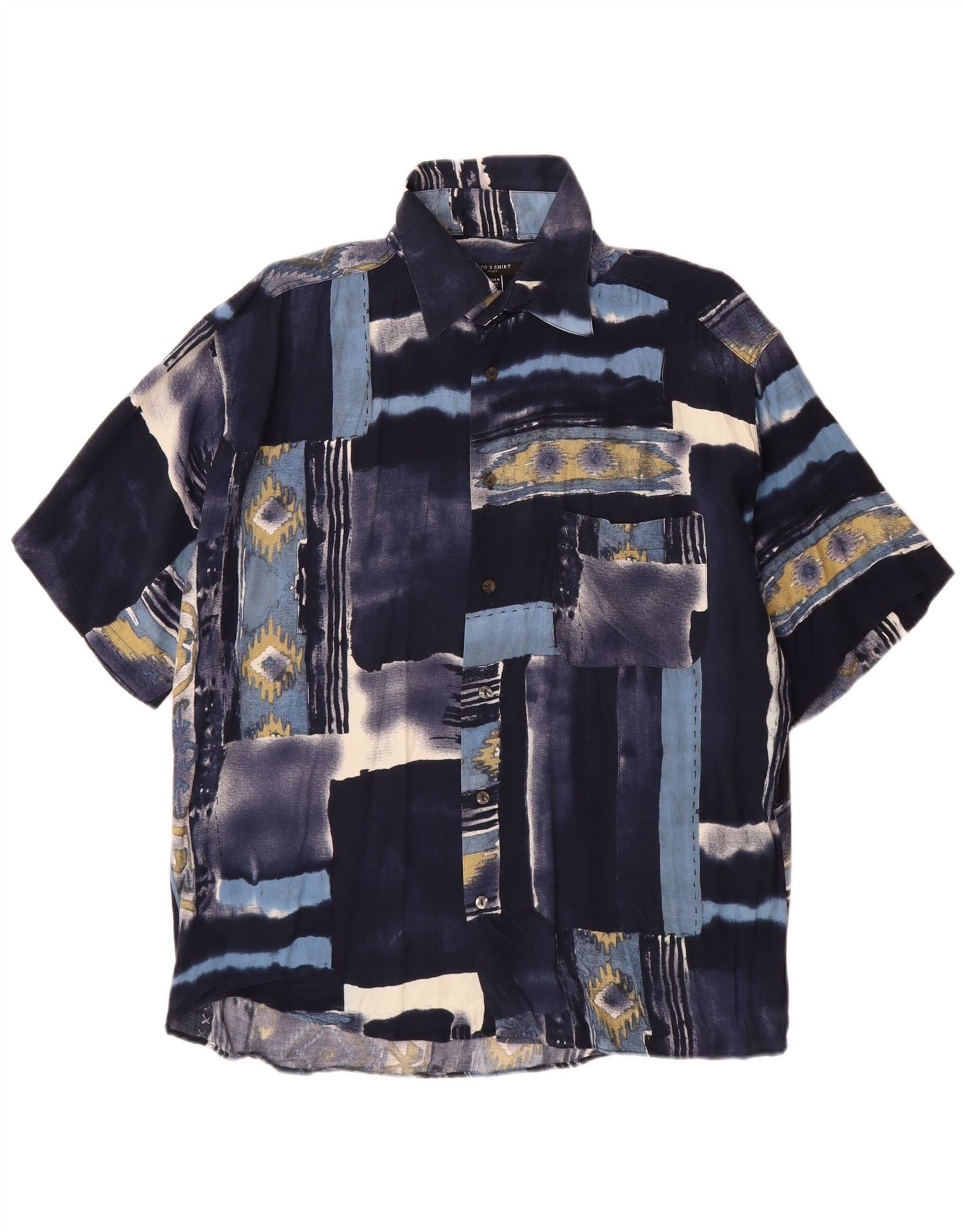 TIPO'S Kortærmet Herreskjorte Stor Marineblå Patchwork Viscose