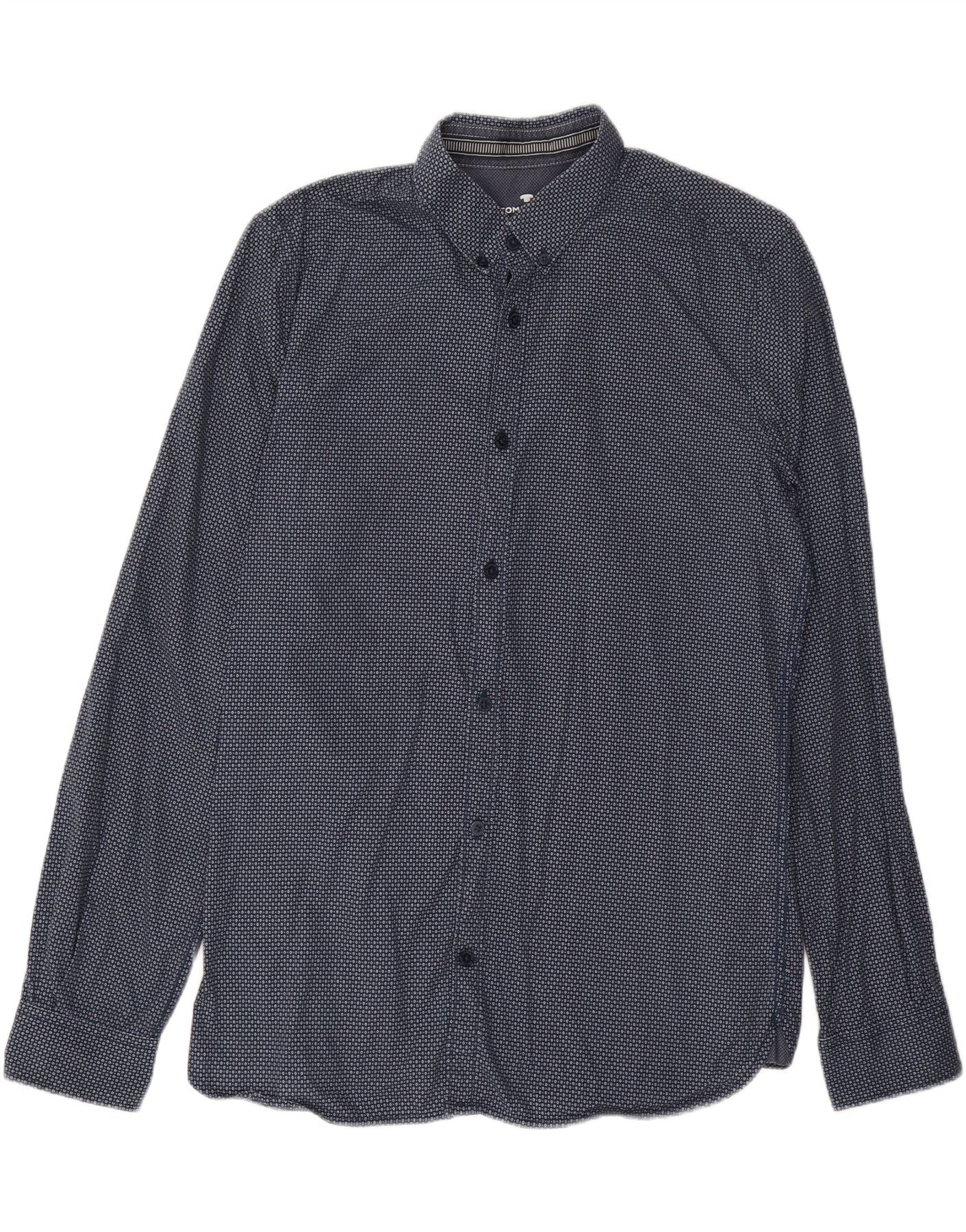 TOM TAILOR Mens Fitted Shirt Medium Navy Blue Geometric Cotton