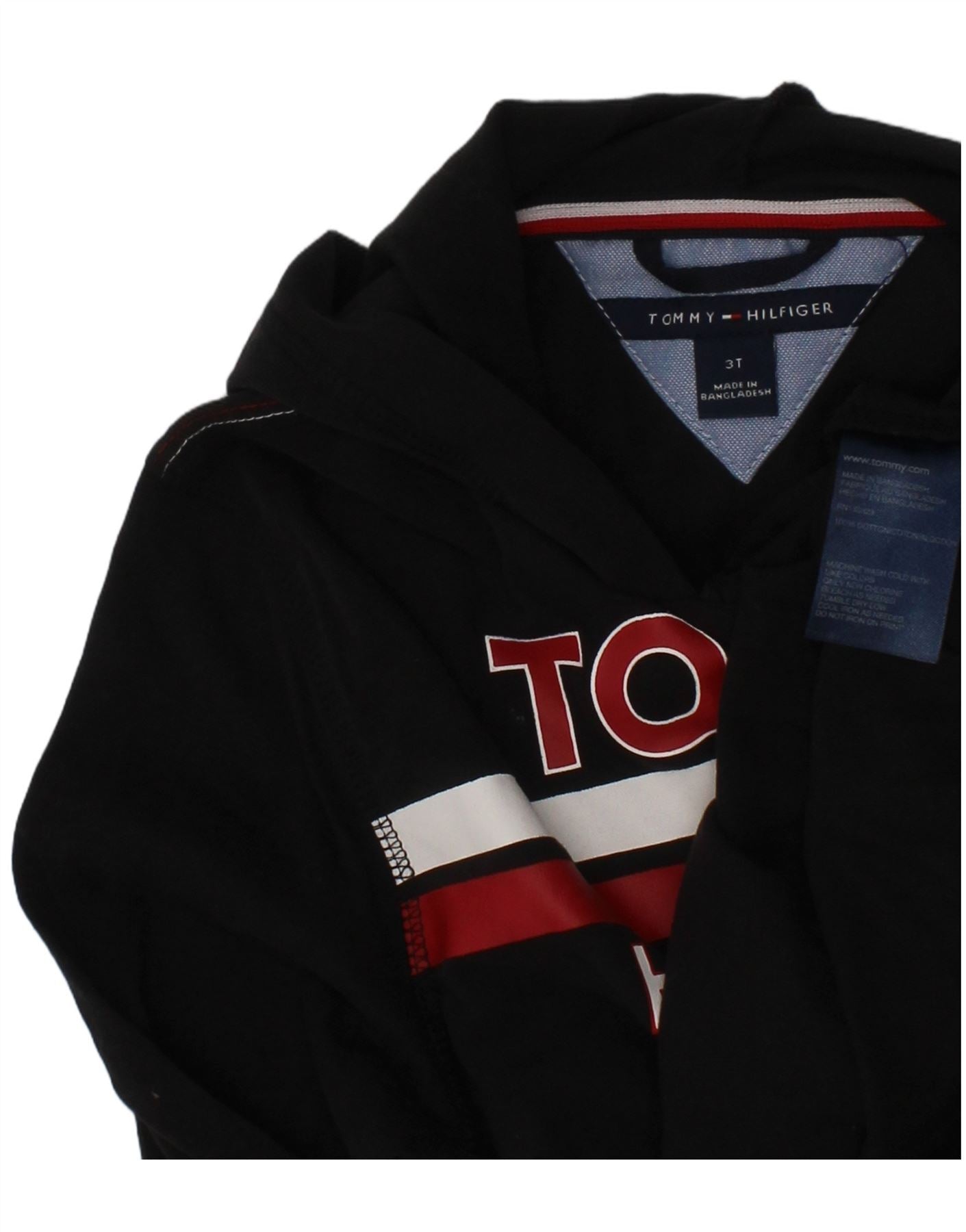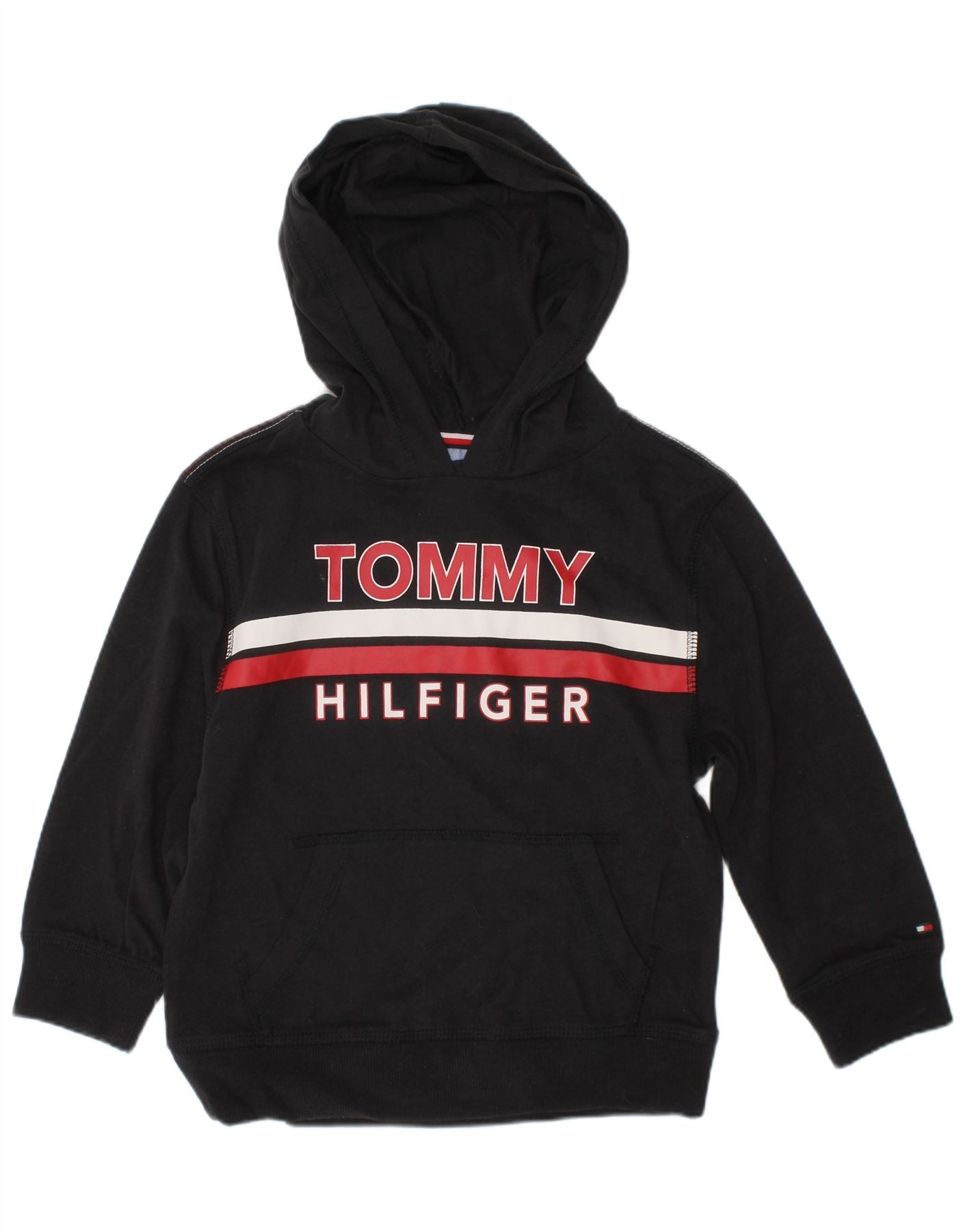 TOMMY HILFIGER Boys Graphic Hoodie Jumper 2-3 Years Black Striped Cotton