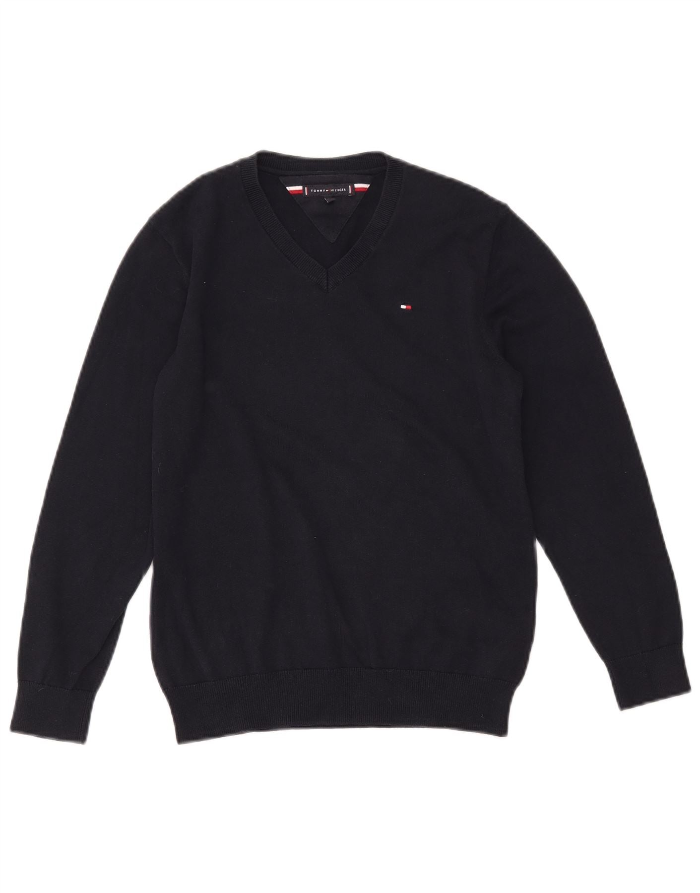 TOMMY HILFIGER drenge sweater med v-hals 11-12 år marineblå bomuld