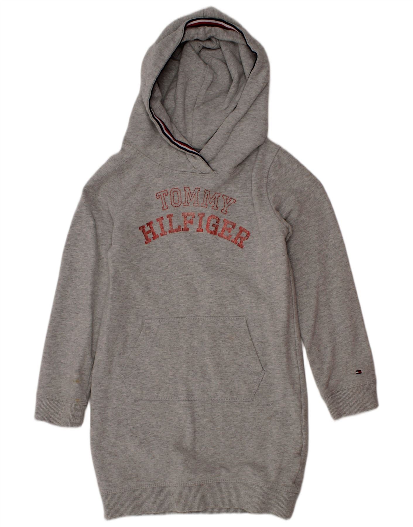 TOMMY HILFIGER Grafisk hættekjole til piger 5-6 år grå flækket bomuld