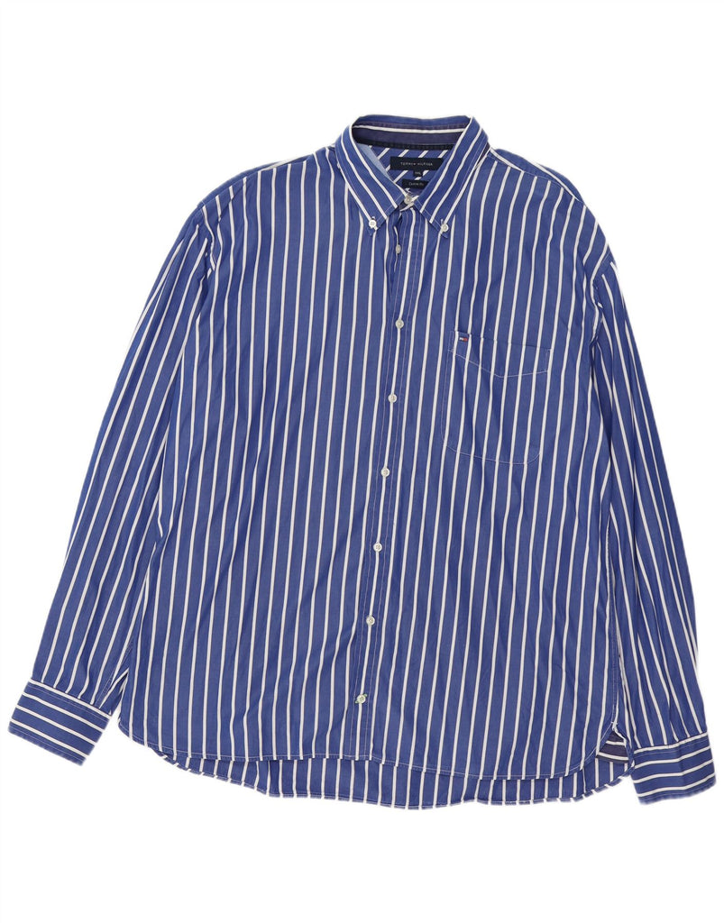 TOMMY HILFIGER Herre Custom Fit skjorte 2XL blå stribet bomuld