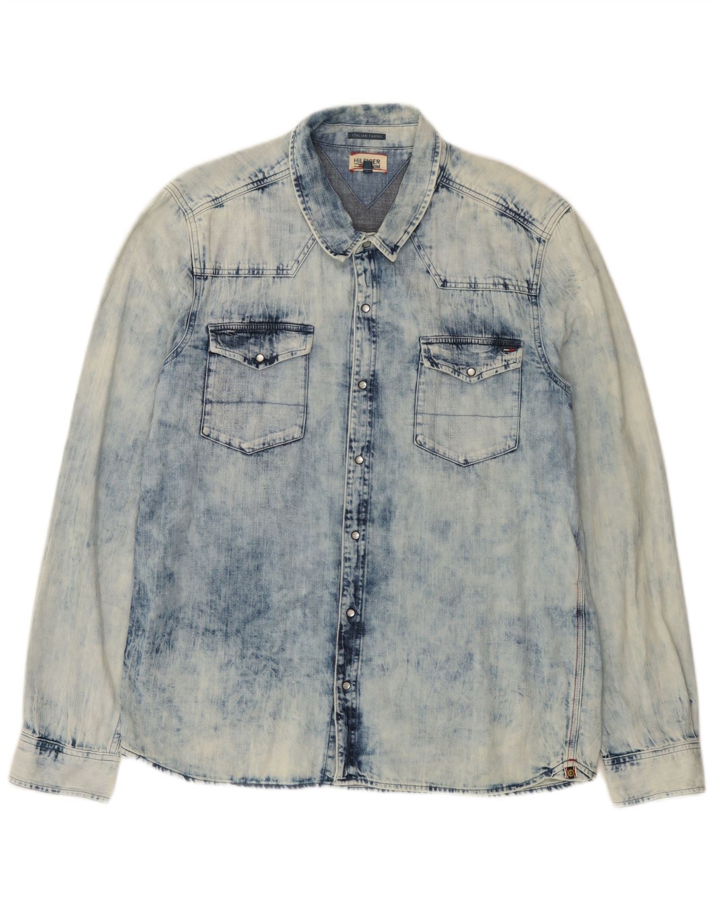 - AI beskrivelse: Denne Tommy Hilfiger denimskjorte til mænd er lavet af 100 bomuldsdenim med en karakteristisk blå syrevask-finish. Den har en klassisk halsudskæring og lange ærmer. Den vestlige stil er tydelig med trykknapper og dobbelte brystlommer. En normal pasform sikrer behageligt slid, hvilket gør den til en alsidig tilføjelse til enhver afslappet garderobe. Syrevasken giver et unikt, tekstureret look.