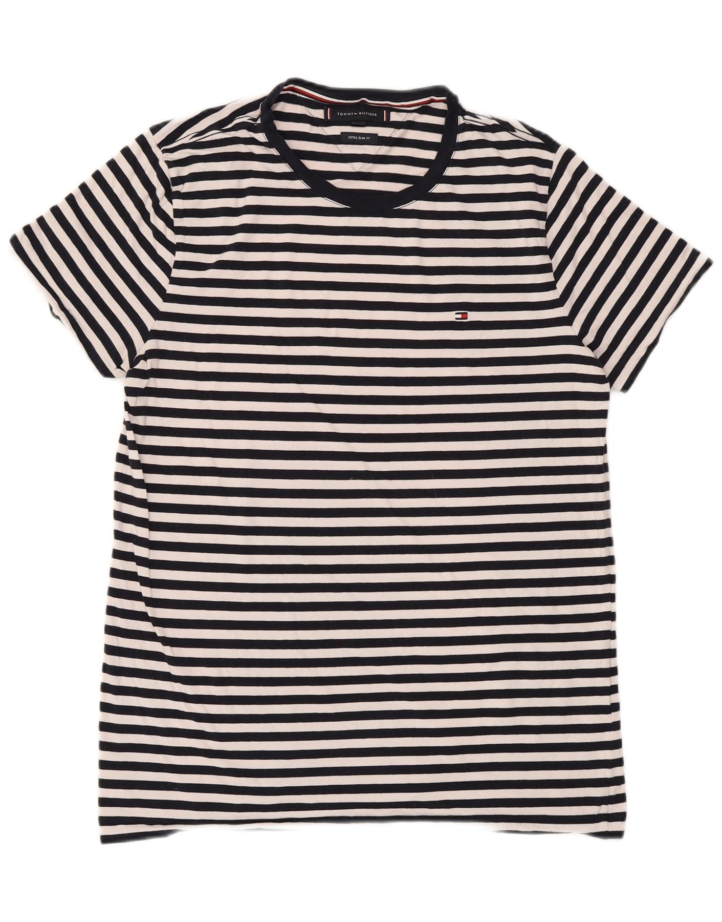 Home > Tommy Hilfiger > Mænds > T-shirts > TOMMY HILFIGER Herre Ekstra Slim T-Shirt Top Stor Marineblå Stribet Bomuld